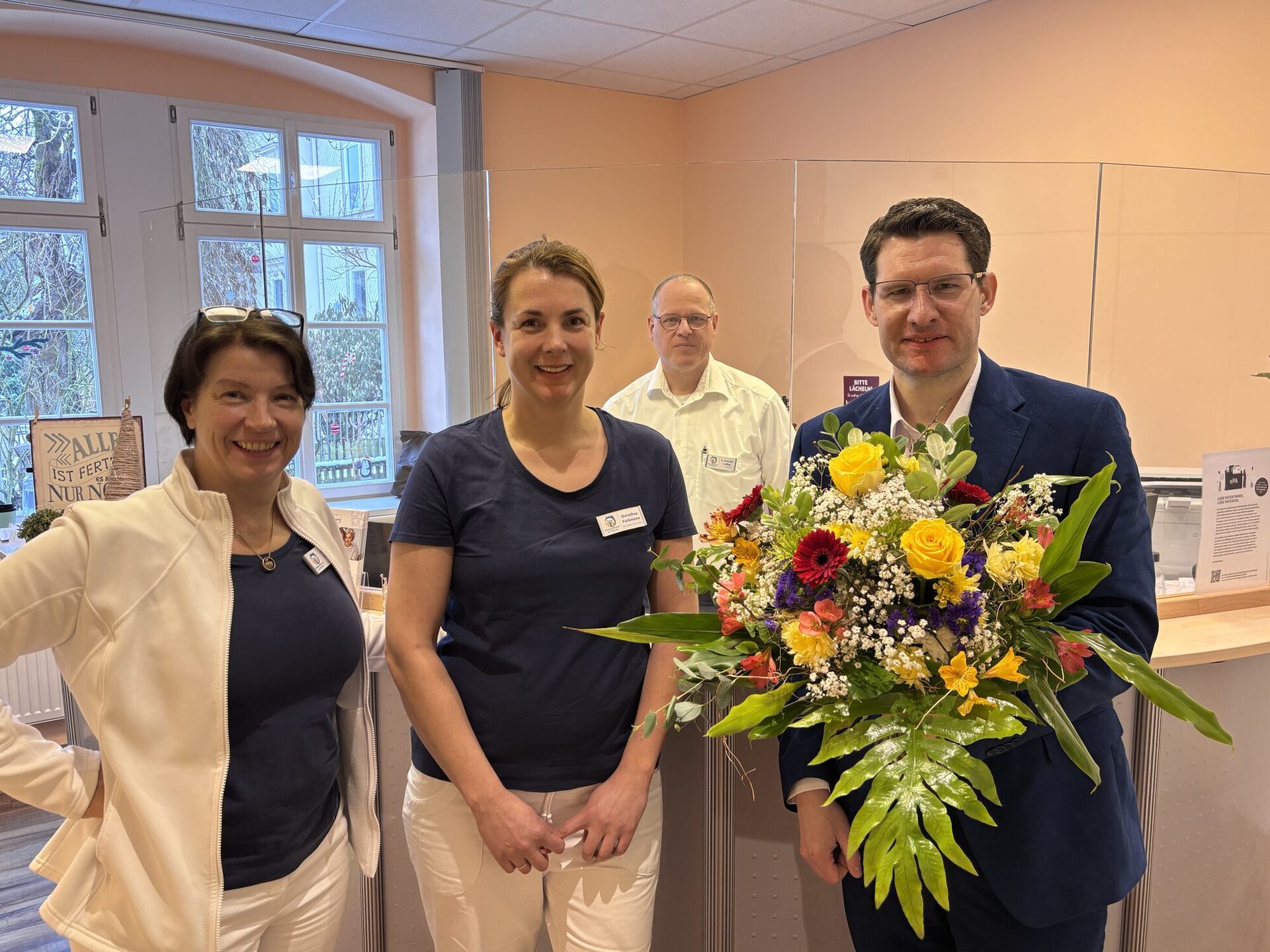 Selbstverständlich kam auch Oberbürgermeister Dominik Sauerteig zur Begrüßung. „Ich finde es wunderbar, dass Sie sich für Coburg entschieden haben“, sagte der OB. „So wird die medizinische Versorgung in unserer Stadt wieder ein Stück besser.“
