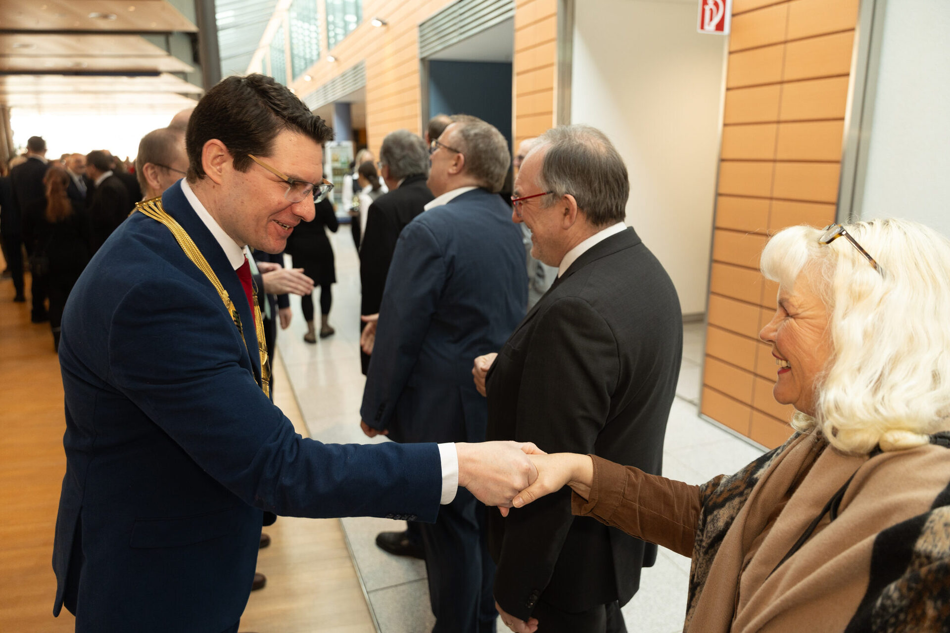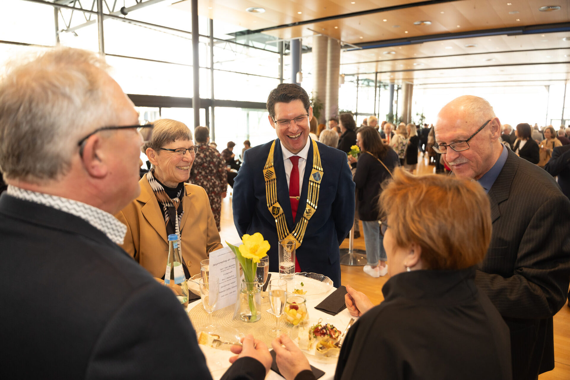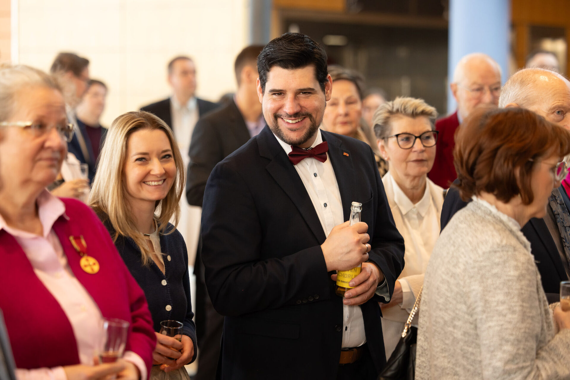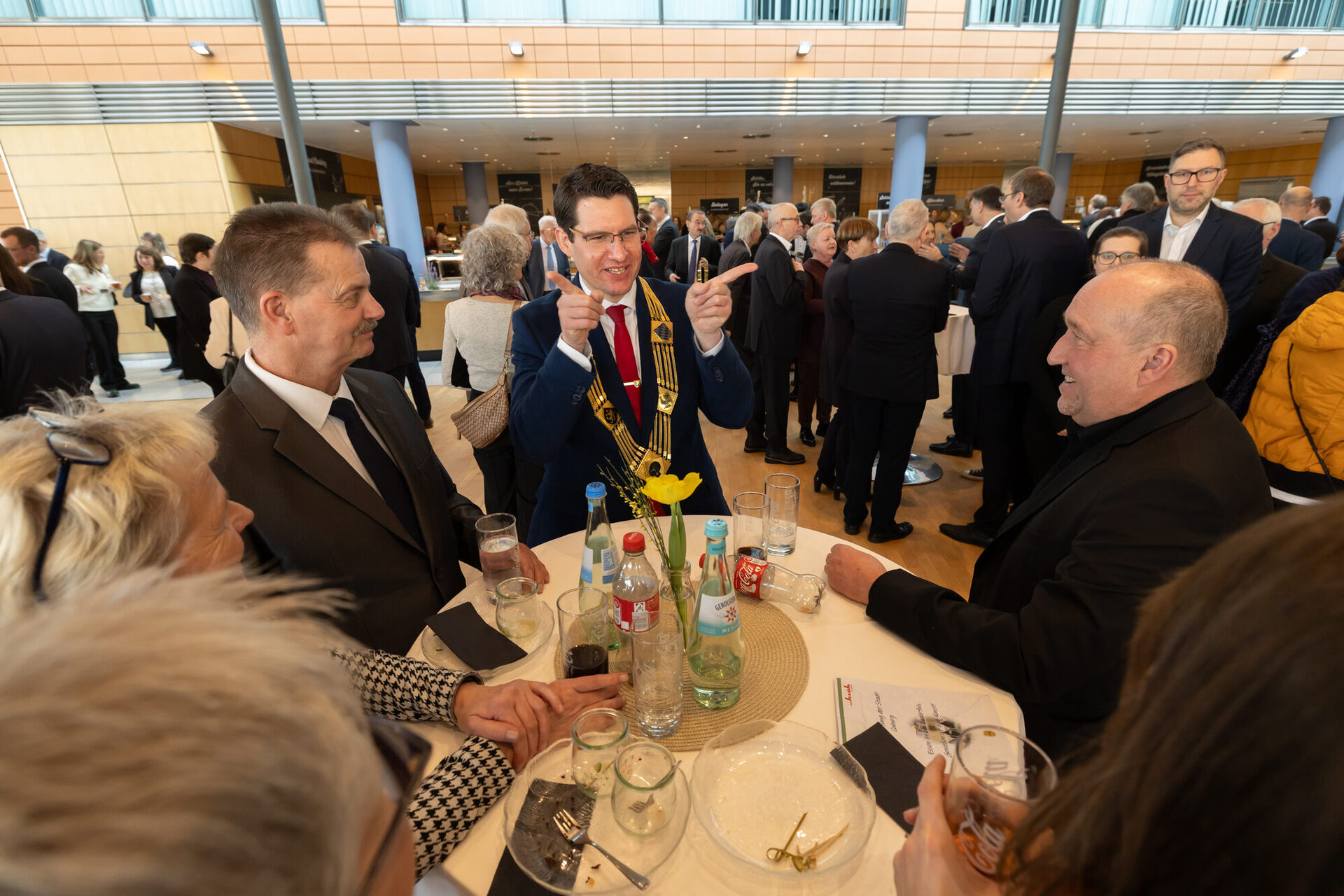 Neben den Vertreter*innen der Coburger Unternehmen, war es dem Oberbürgermeister wichtig, den Neujahrsempfang auch für weitere Akteur*innen der Stadtgesellschaft, die sich in besonderer Weise für die Stadt einsetzen oder sie prägen, zu öffnen: Ehren- und Hauptamtliche von Blaulichtorganisationen, Sportvereinen, sozialen Einrichtungen, Kultur und Bildung. Ergänzt wurde dieser Kreis auch in diesem Jahr durch geloste Bürger*innen ab 18 Jahren, die stellvertretend für die rund 41.000 Coburger*innen als Ehrengäste teilnahmen. So wurde der Empfang einmal mehr zu einem Querschnitt der Stadtgesellschaft.