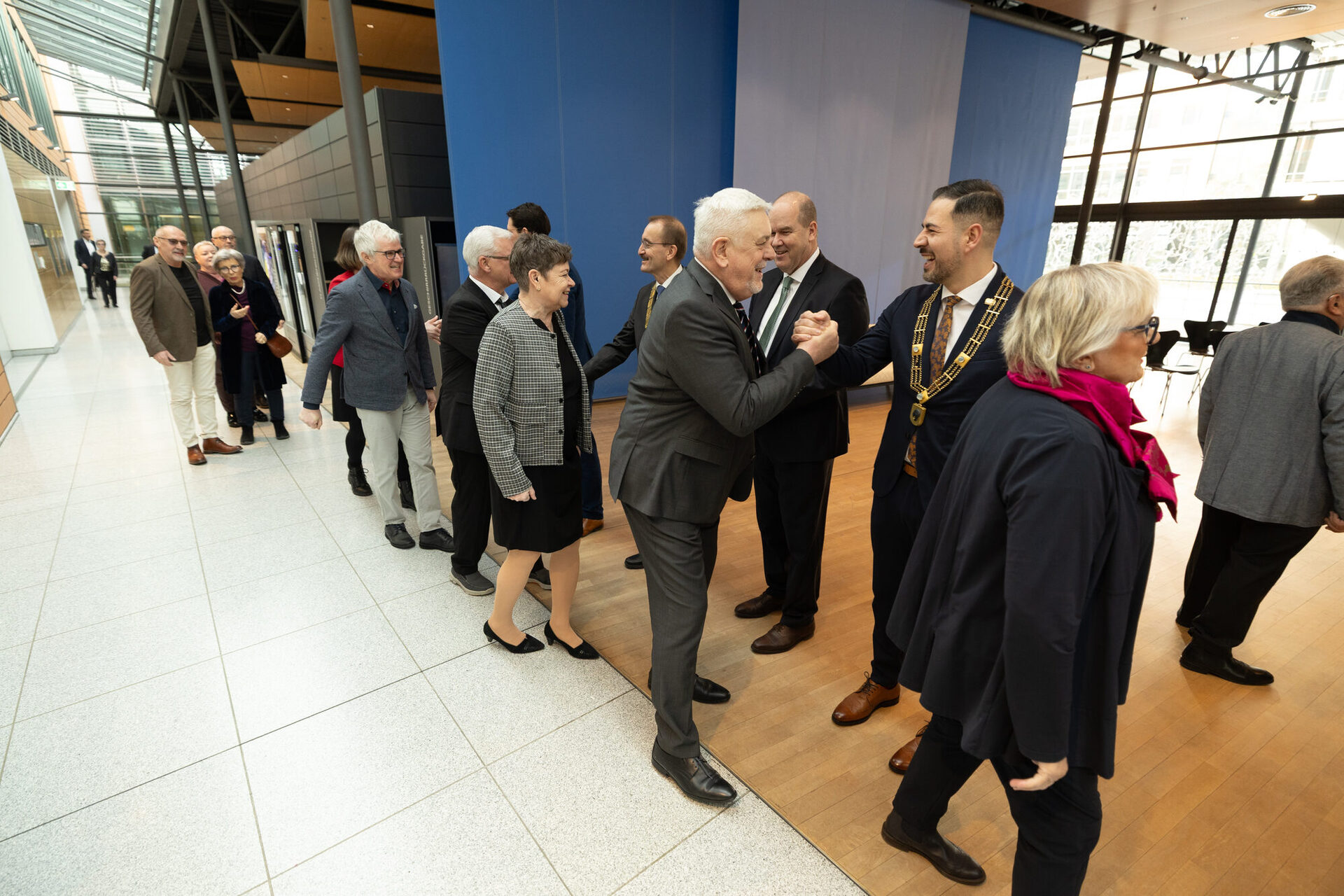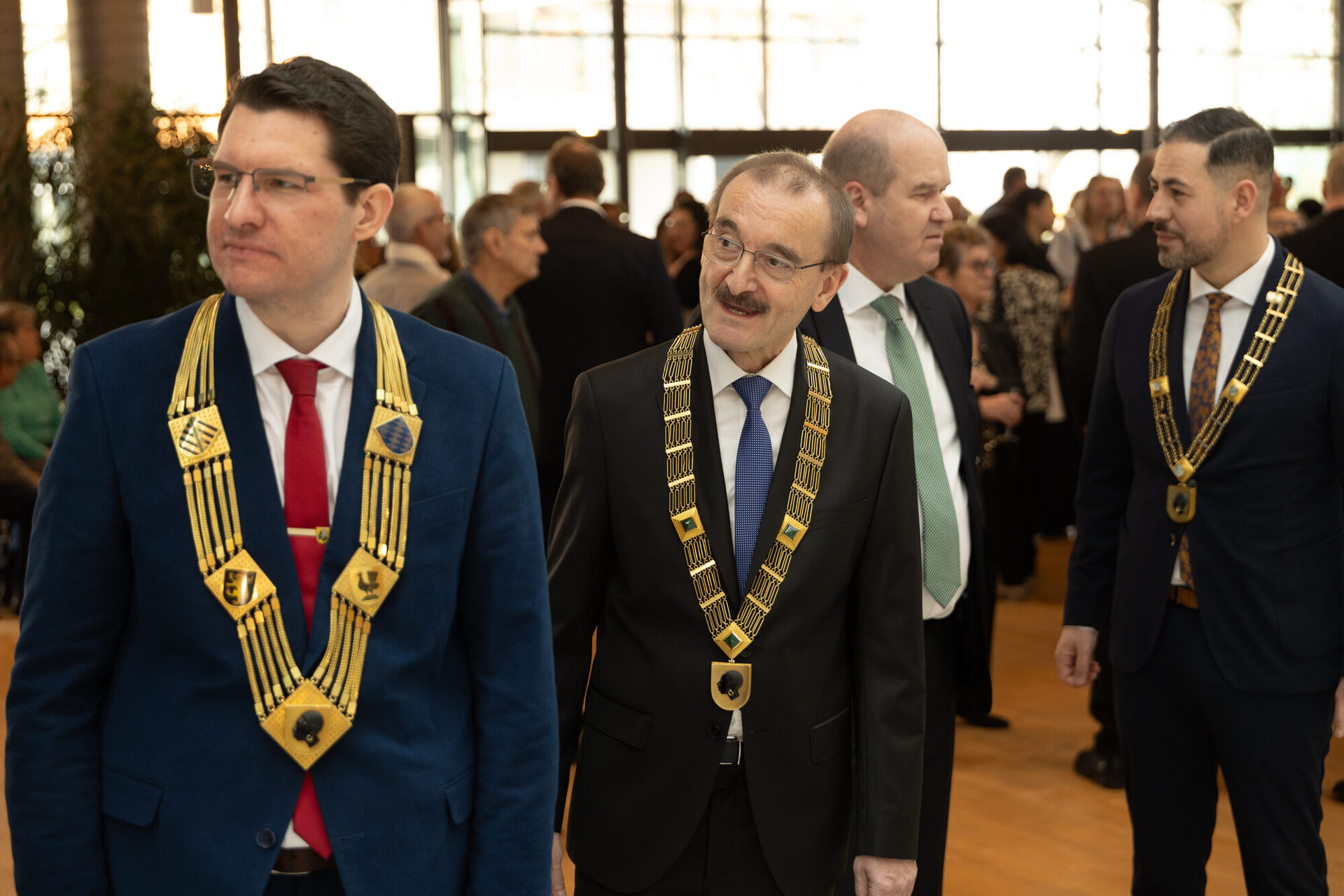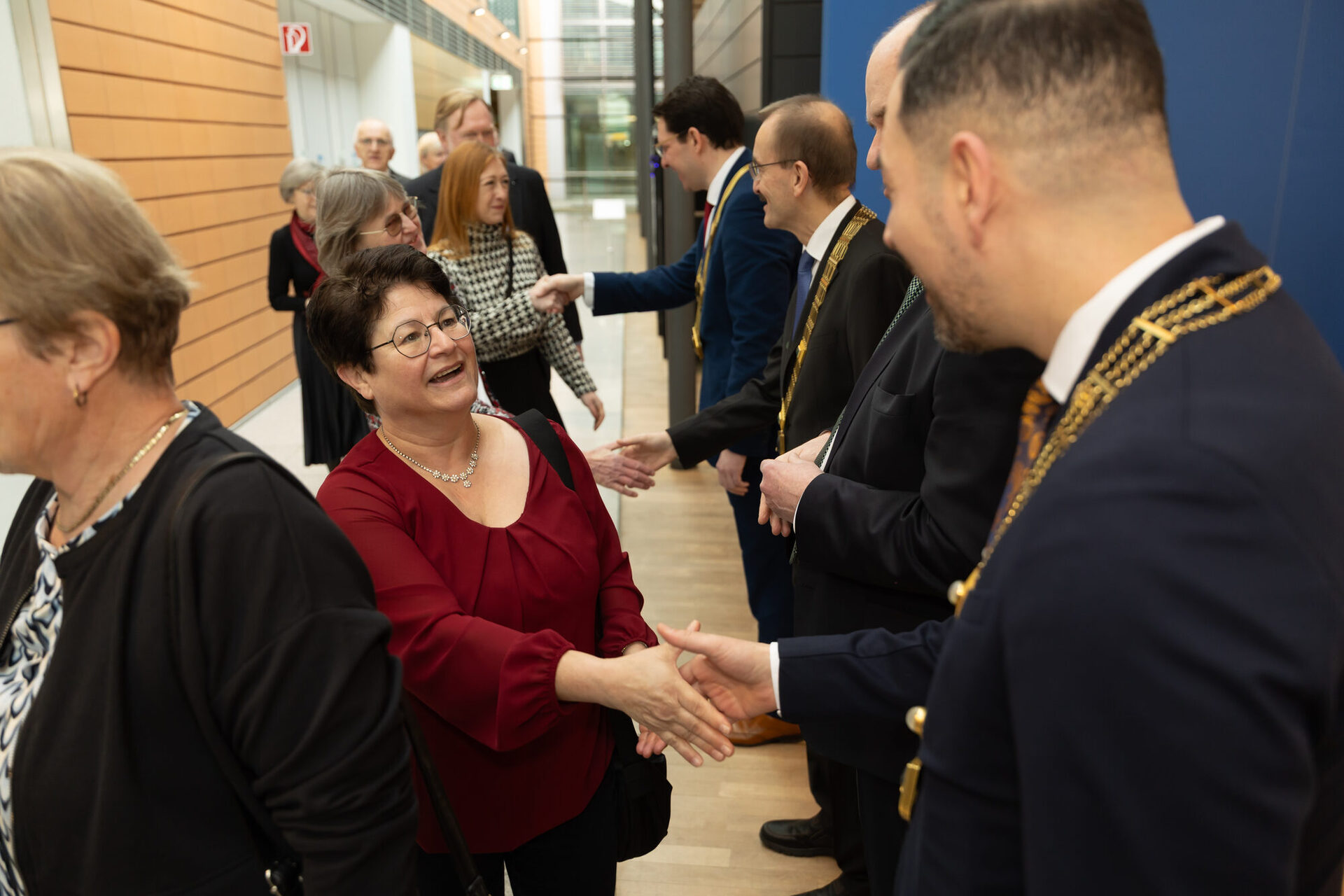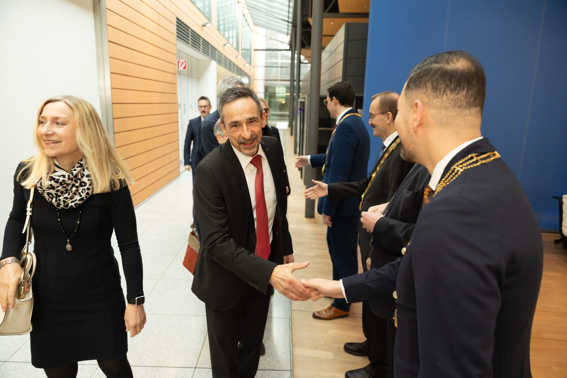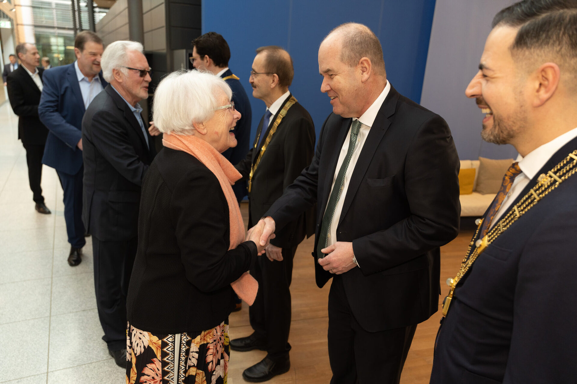 Neben den Vertreter*innen der Coburger Unternehmen, war es dem Oberbürgermeister wichtig, den Neujahrsempfang auch für weitere Akteur*innen der Stadtgesellschaft, die sich in besonderer Weise für die Stadt einsetzen oder sie prägen, zu öffnen: Ehren- und Hauptamtliche von Blaulichtorganisationen, Sportvereinen, sozialen Einrichtungen, Kultur und Bildung. Ergänzt wurde dieser Kreis auch in diesem Jahr durch geloste Bürger*innen ab 18 Jahren, die stellvertretend für die rund 41.000 Coburger*innen als Ehrengäste teilnahmen. So wurde der Empfang einmal mehr zu einem Querschnitt der Stadtgesellschaft.