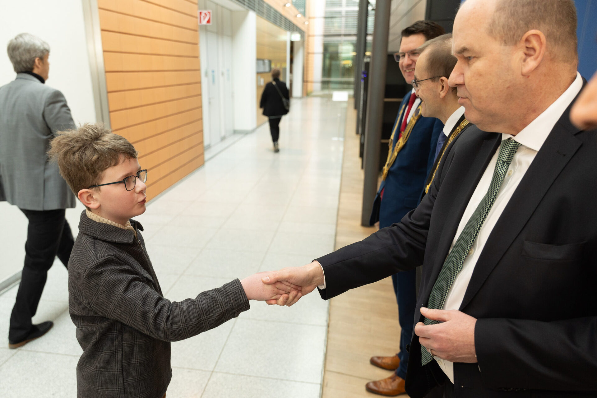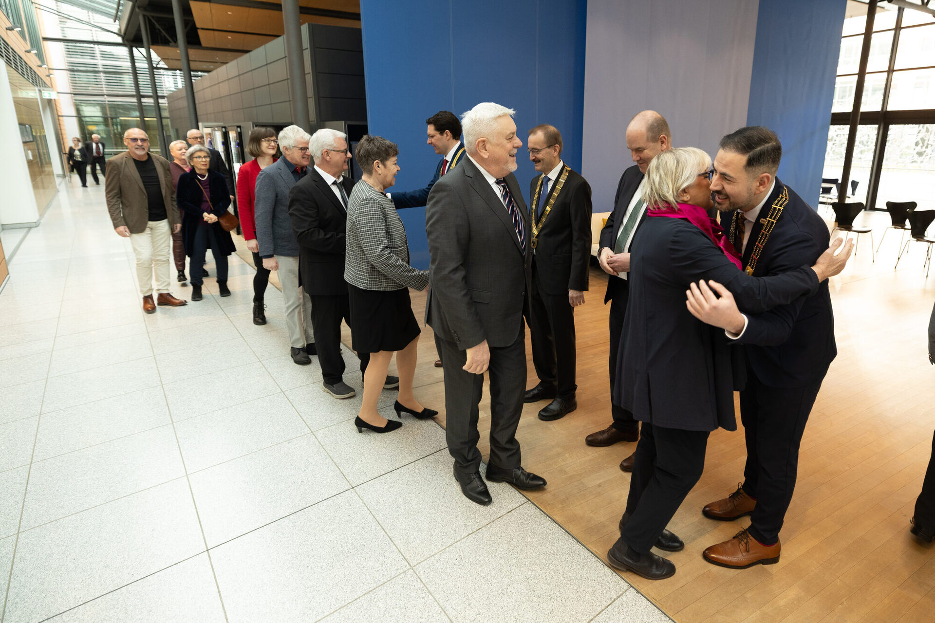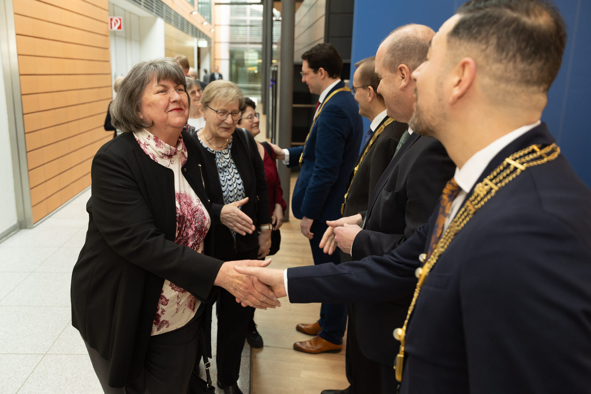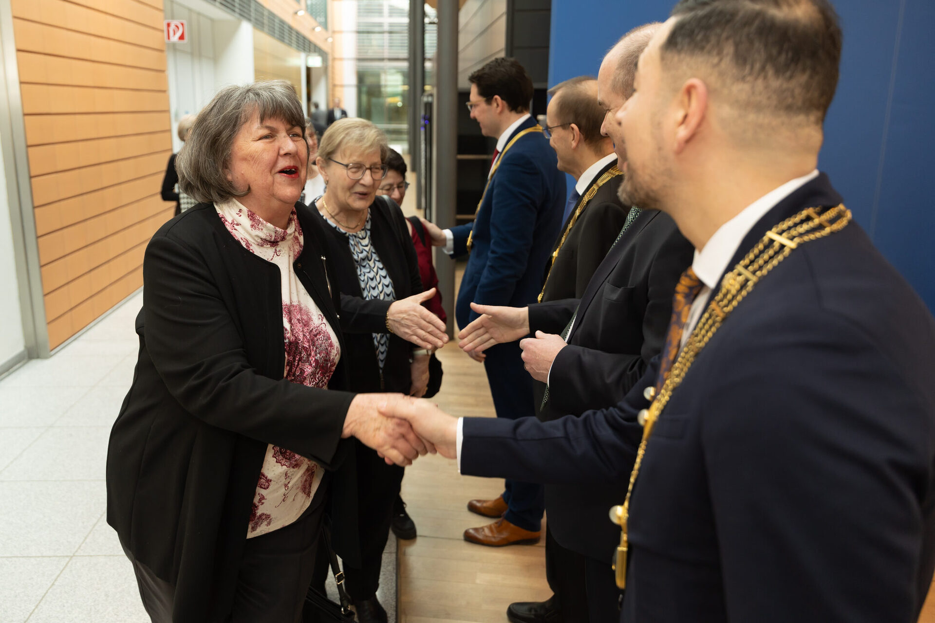 Neben den Vertreter*innen der Coburger Unternehmen, war es dem Oberbürgermeister wichtig, den Neujahrsempfang auch für weitere Akteur*innen der Stadtgesellschaft, die sich in besonderer Weise für die Stadt einsetzen oder sie prägen, zu öffnen: Ehren- und Hauptamtliche von Blaulichtorganisationen, Sportvereinen, sozialen Einrichtungen, Kultur und Bildung. Ergänzt wurde dieser Kreis auch in diesem Jahr durch geloste Bürger*innen ab 18 Jahren, die stellvertretend für die rund 41.000 Coburger*innen als Ehrengäste teilnahmen. So wurde der Empfang einmal mehr zu einem Querschnitt der Stadtgesellschaft.