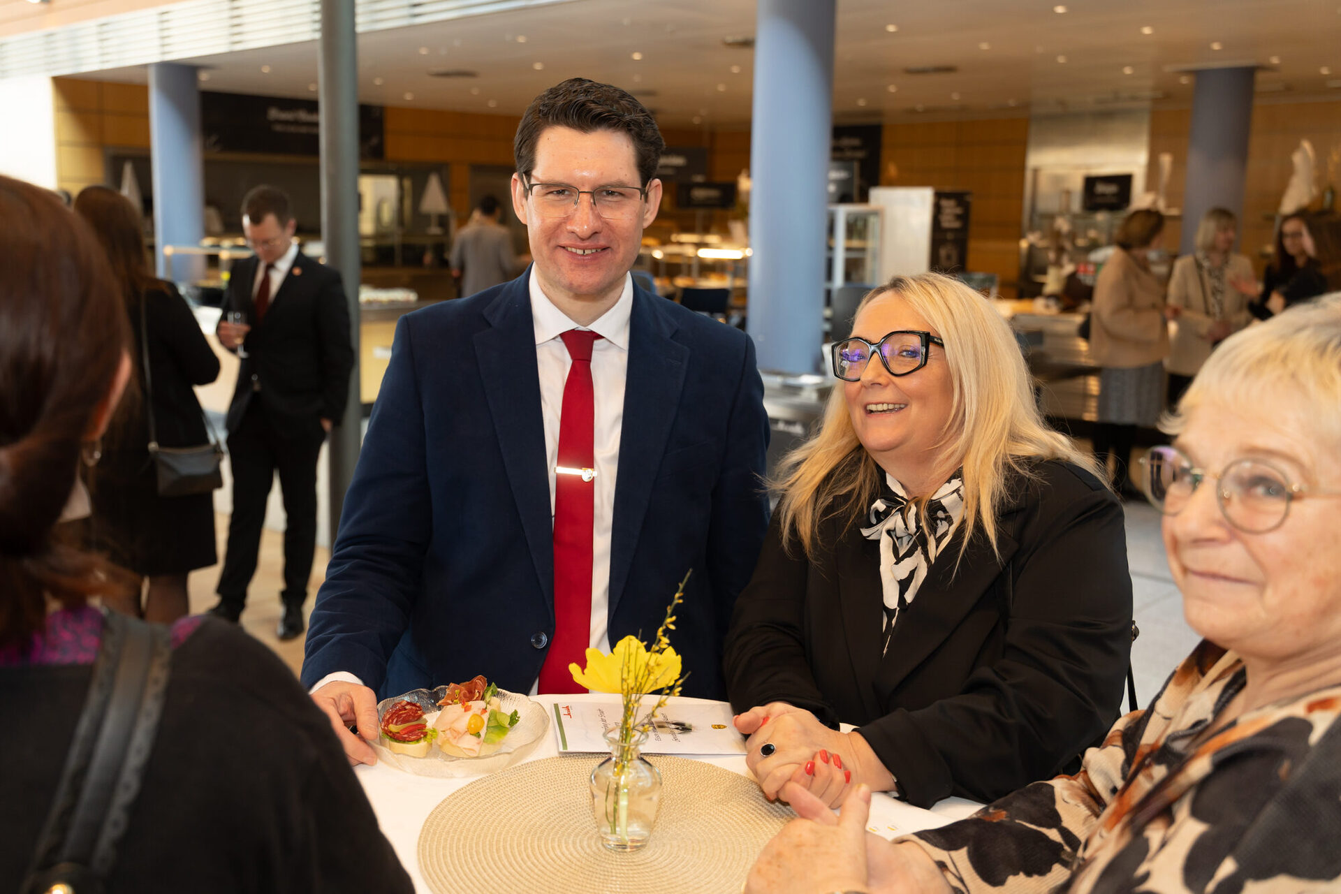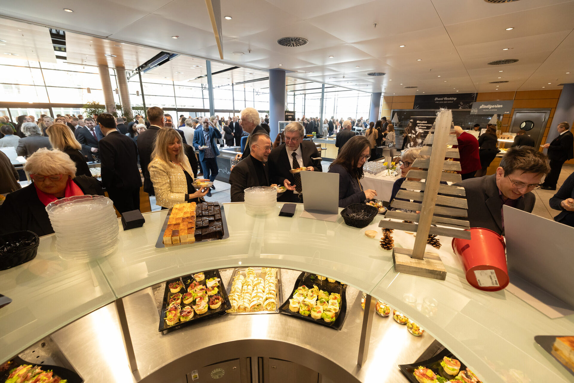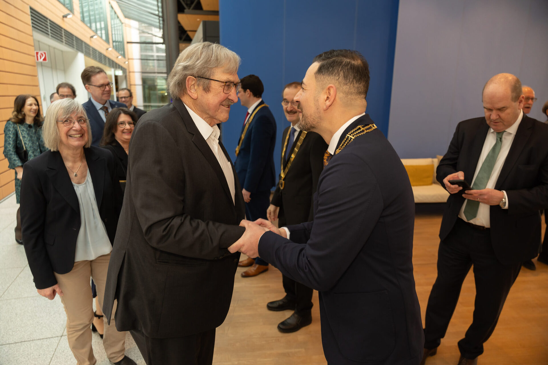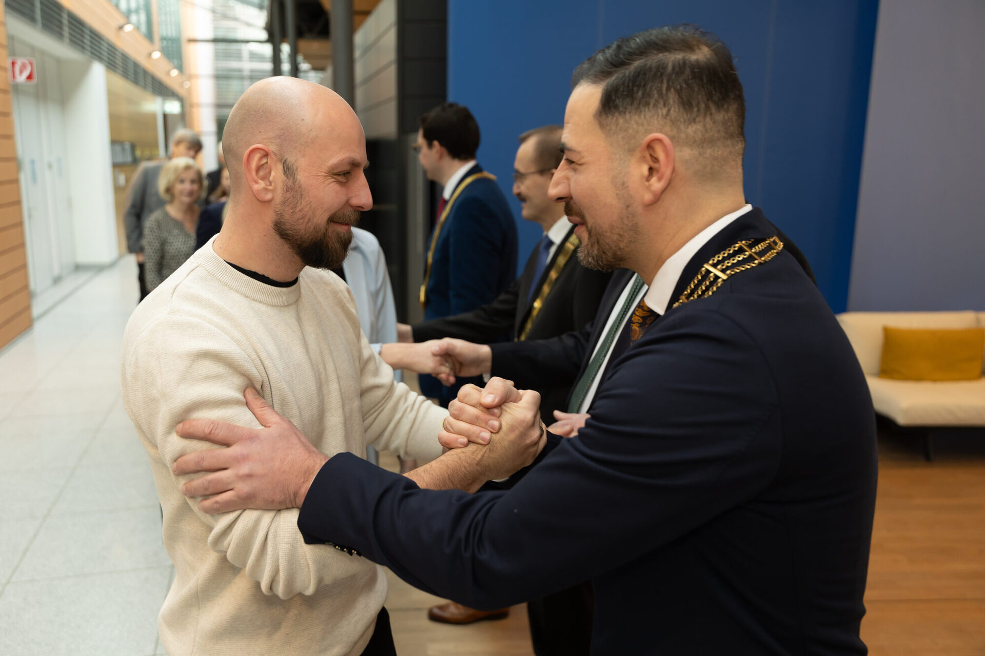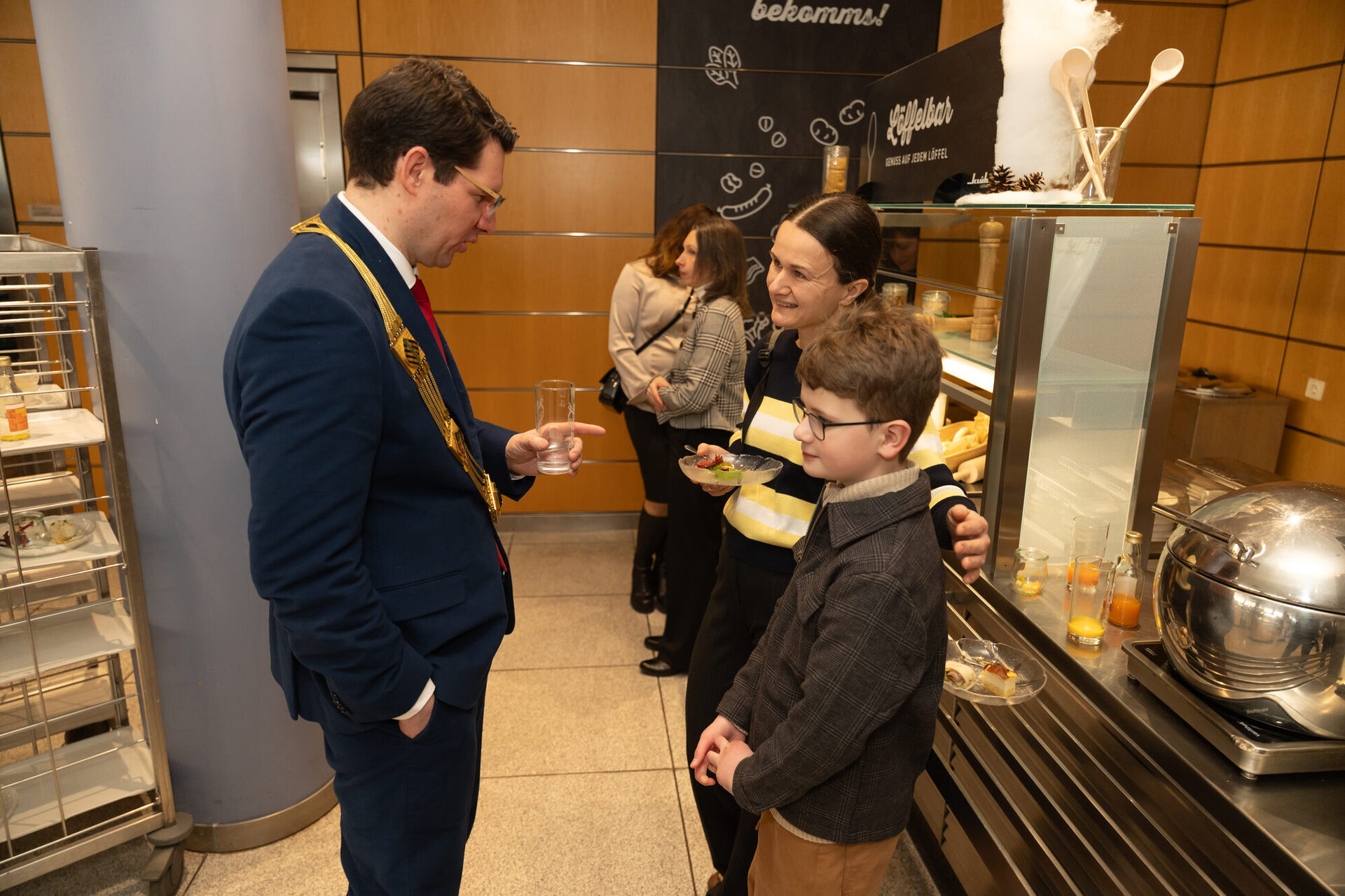 Neben den Vertreter*innen der Coburger Unternehmen, war es dem Oberbürgermeister wichtig, den Neujahrsempfang auch für weitere Akteur*innen der Stadtgesellschaft, die sich in besonderer Weise für die Stadt einsetzen oder sie prägen, zu öffnen: Ehren- und Hauptamtliche von Blaulichtorganisationen, Sportvereinen, sozialen Einrichtungen, Kultur und Bildung. Ergänzt wurde dieser Kreis auch in diesem Jahr durch geloste Bürger*innen ab 18 Jahren, die stellvertretend für die rund 41.000 Coburger*innen als Ehrengäste teilnahmen. So wurde der Empfang einmal mehr zu einem Querschnitt der Stadtgesellschaft.