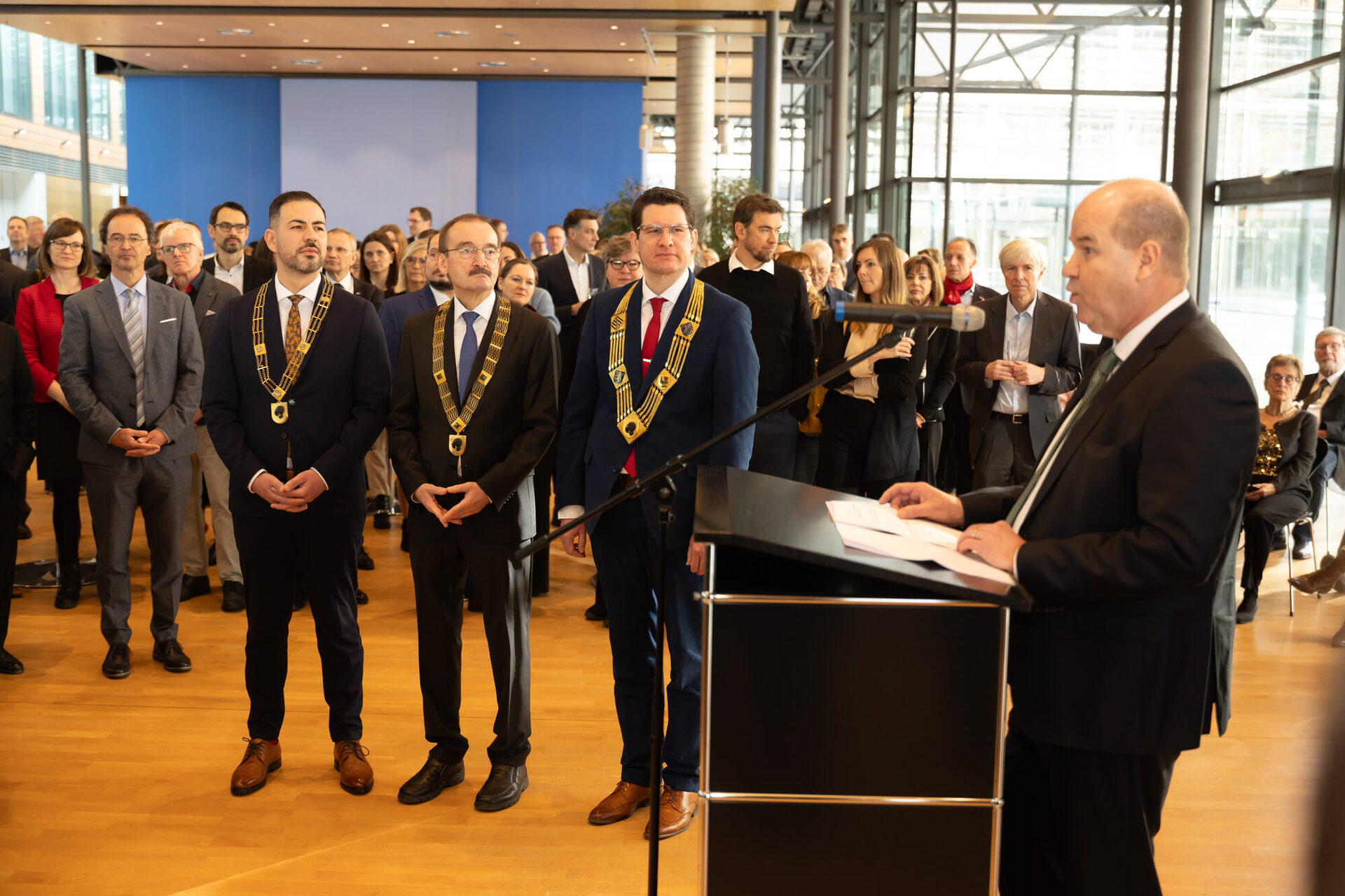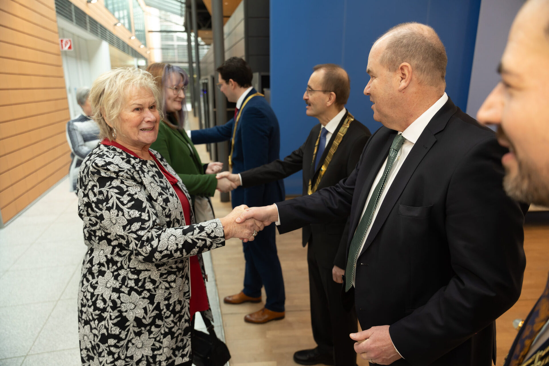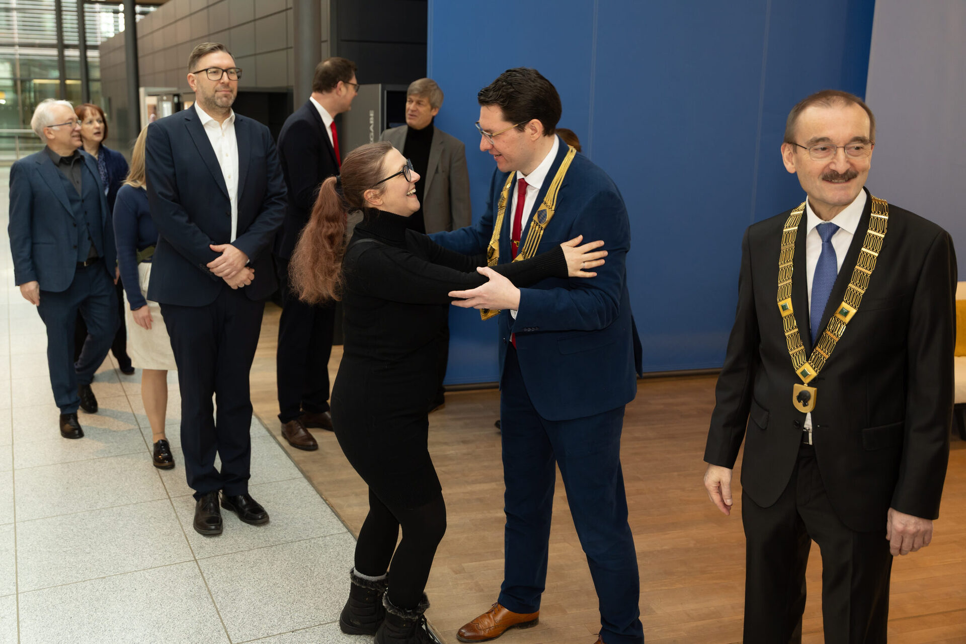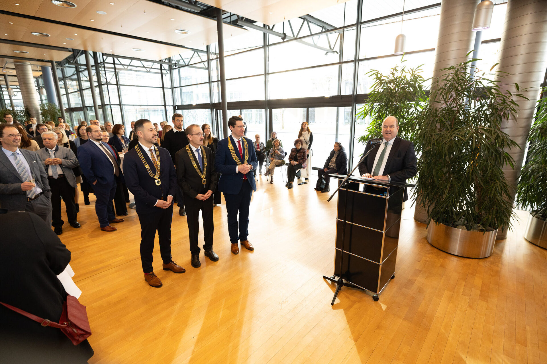 Neben den Vertreter*innen der Coburger Unternehmen, war es dem Oberbürgermeister wichtig, den Neujahrsempfang auch für weitere Akteur*innen der Stadtgesellschaft, die sich in besonderer Weise für die Stadt einsetzen oder sie prägen, zu öffnen: Ehren- und Hauptamtliche von Blaulichtorganisationen, Sportvereinen, sozialen Einrichtungen, Kultur und Bildung. Ergänzt wurde dieser Kreis auch in diesem Jahr durch geloste Bürger*innen ab 18 Jahren, die stellvertretend für die rund 41.000 Coburger*innen als Ehrengäste teilnahmen. So wurde der Empfang einmal mehr zu einem Querschnitt der Stadtgesellschaft.