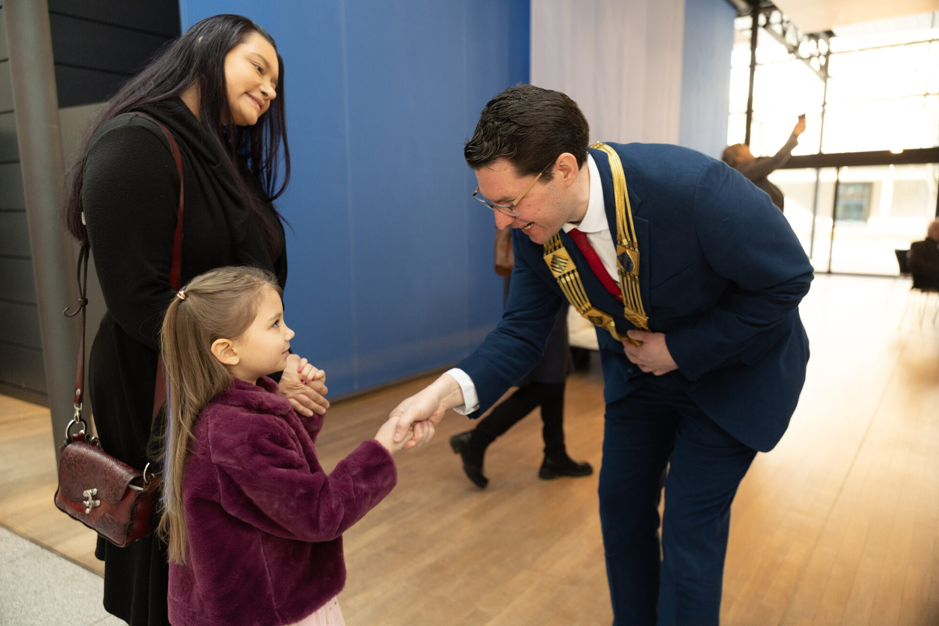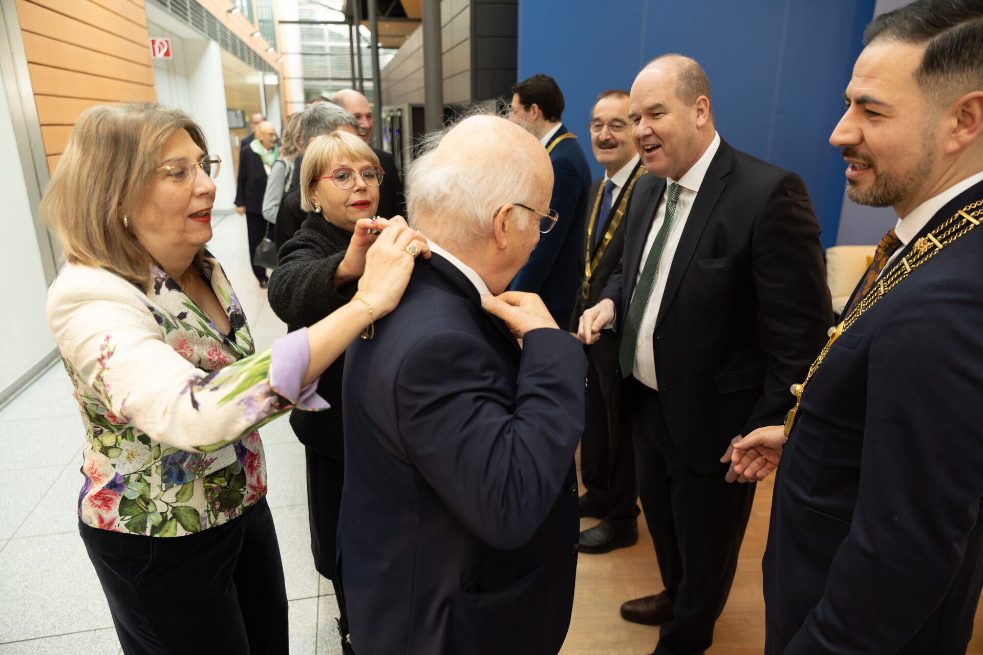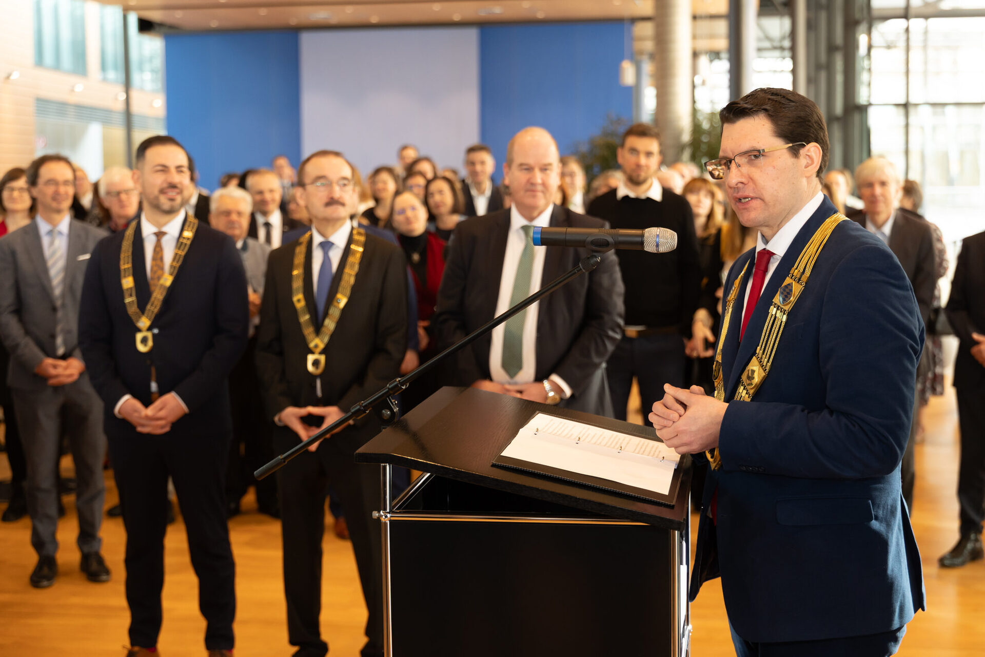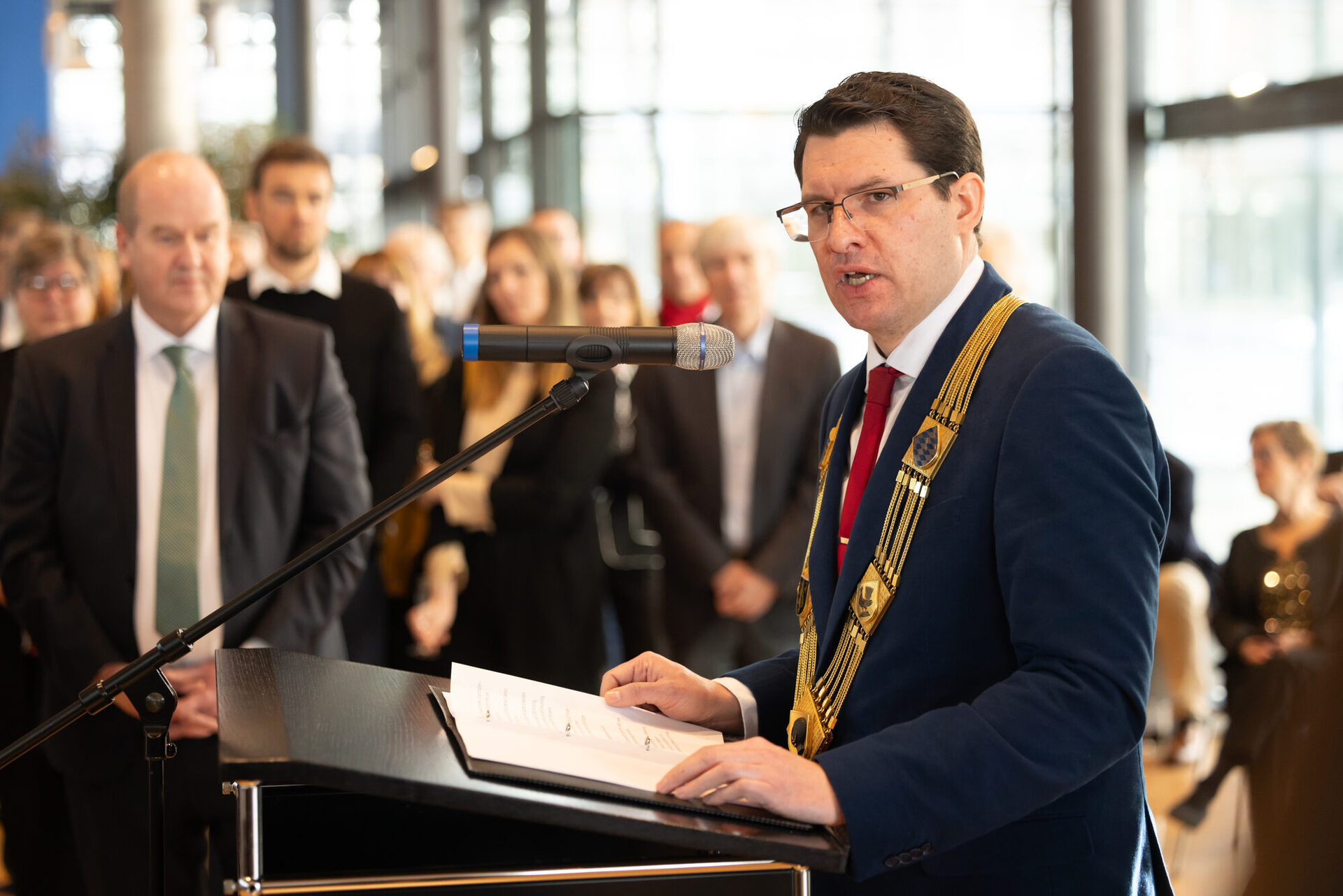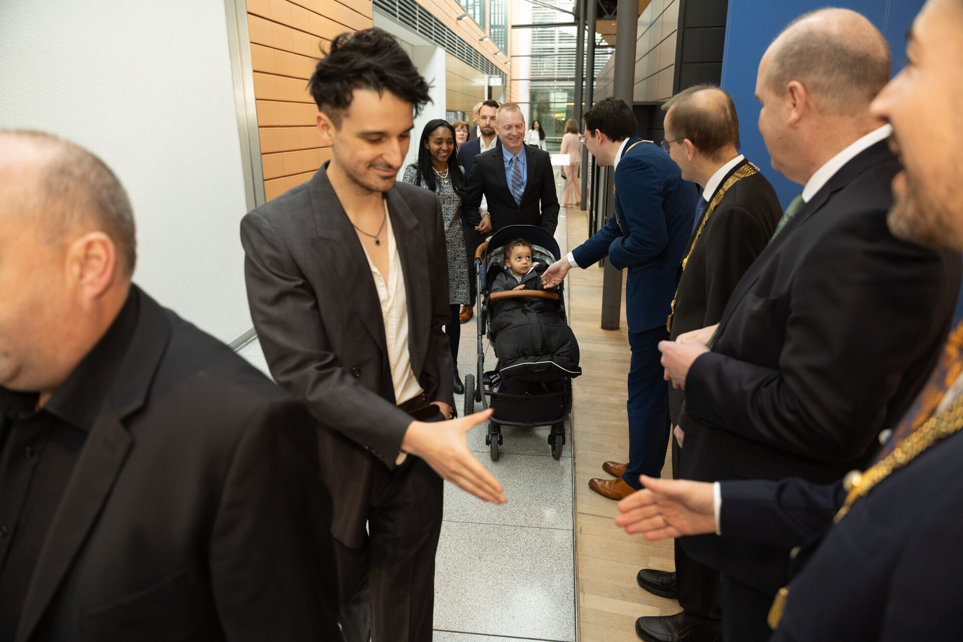Neben den Vertreter*innen der Coburger Unternehmen, war es dem Oberbürgermeister wichtig, den Neujahrsempfang auch für weitere Akteur*innen der Stadtgesellschaft, die sich in besonderer Weise für die Stadt einsetzen oder sie prägen, zu öffnen: Ehren- und Hauptamtliche von Blaulichtorganisationen, Sportvereinen, sozialen Einrichtungen, Kultur und Bildung. Ergänzt wurde dieser Kreis auch in diesem Jahr durch geloste Bürger*innen ab 18 Jahren, die stellvertretend für die rund 41.000 Coburger*innen als Ehrengäste teilnahmen. So wurde der Empfang einmal mehr zu einem Querschnitt der Stadtgesellschaft.