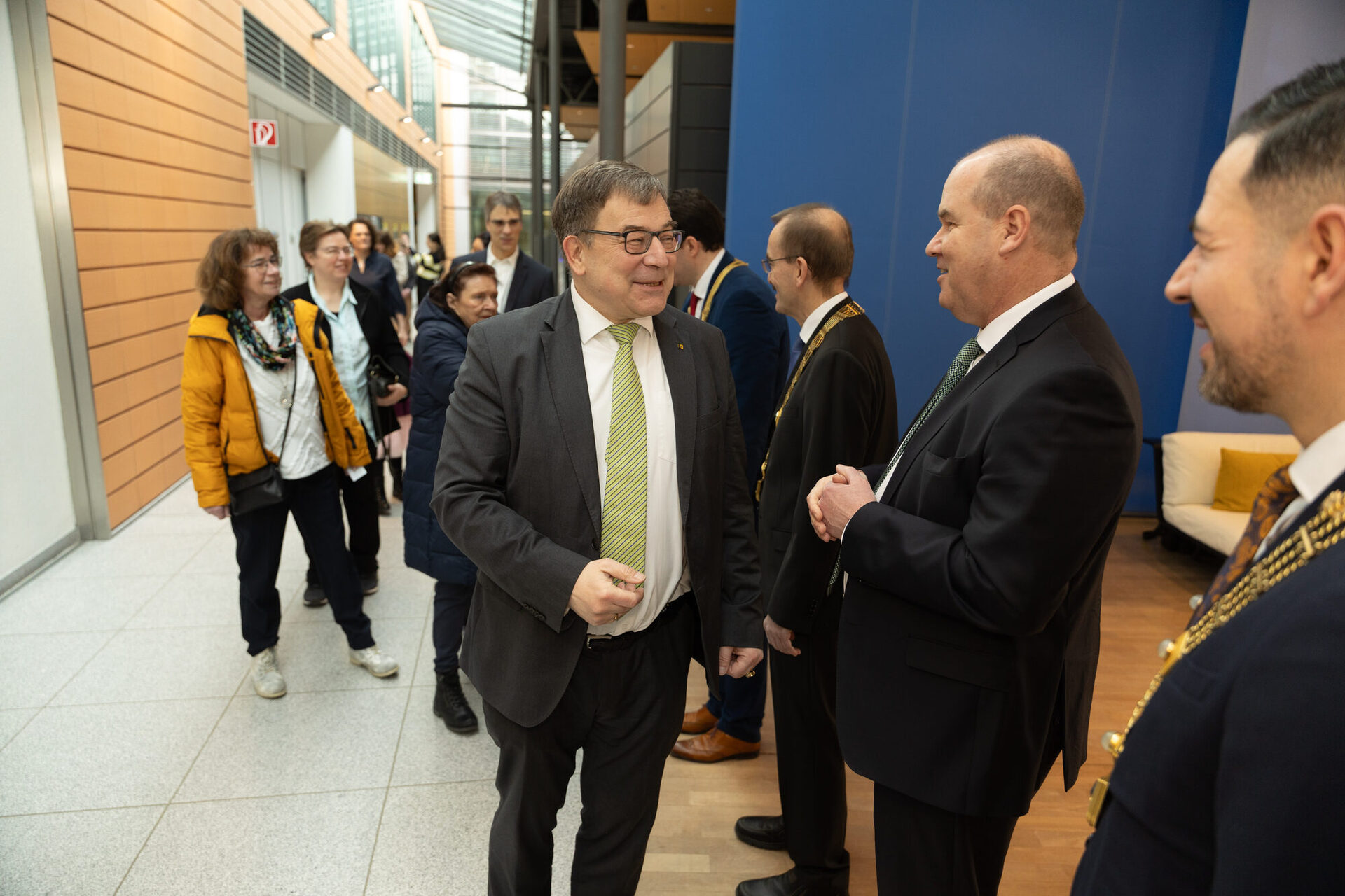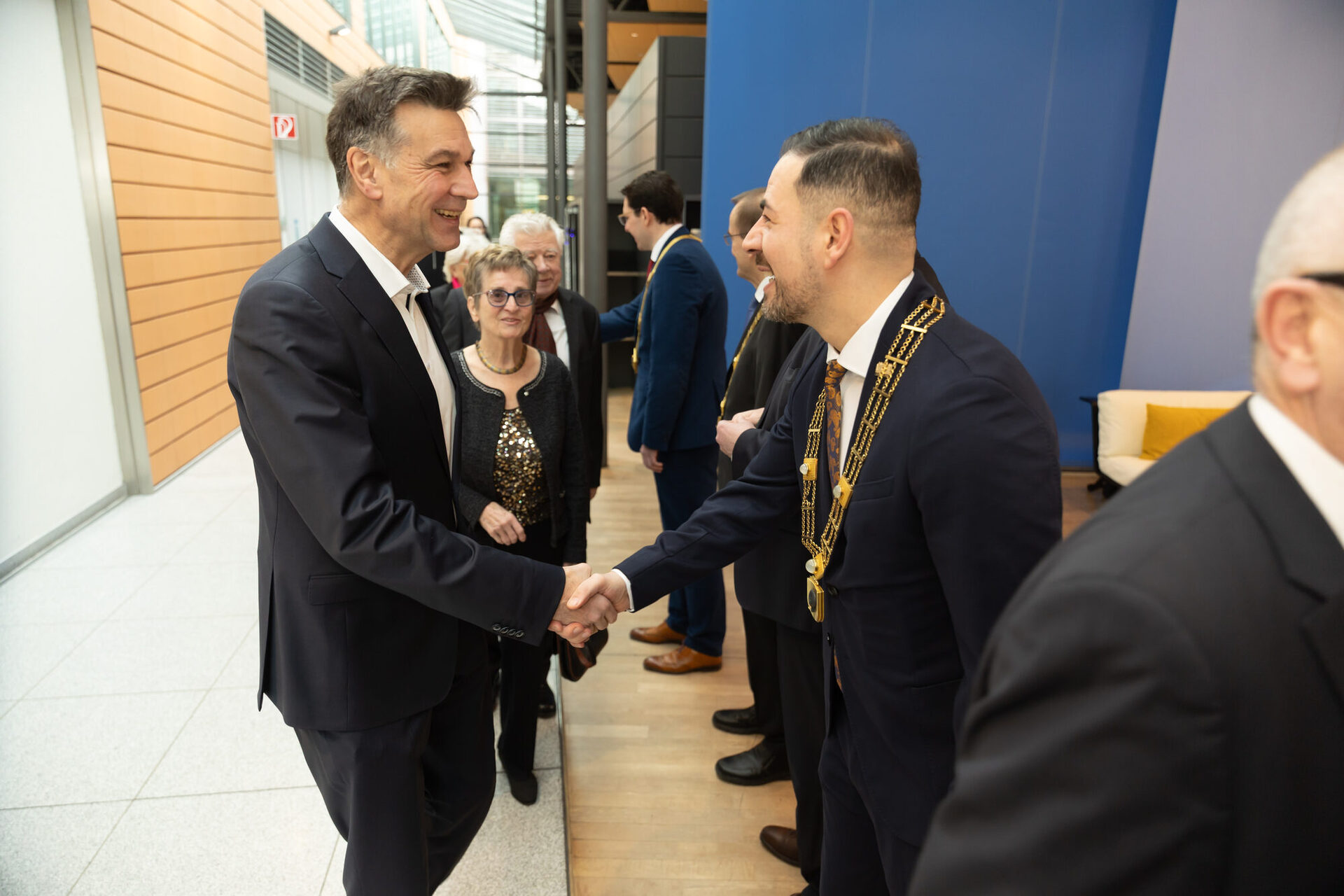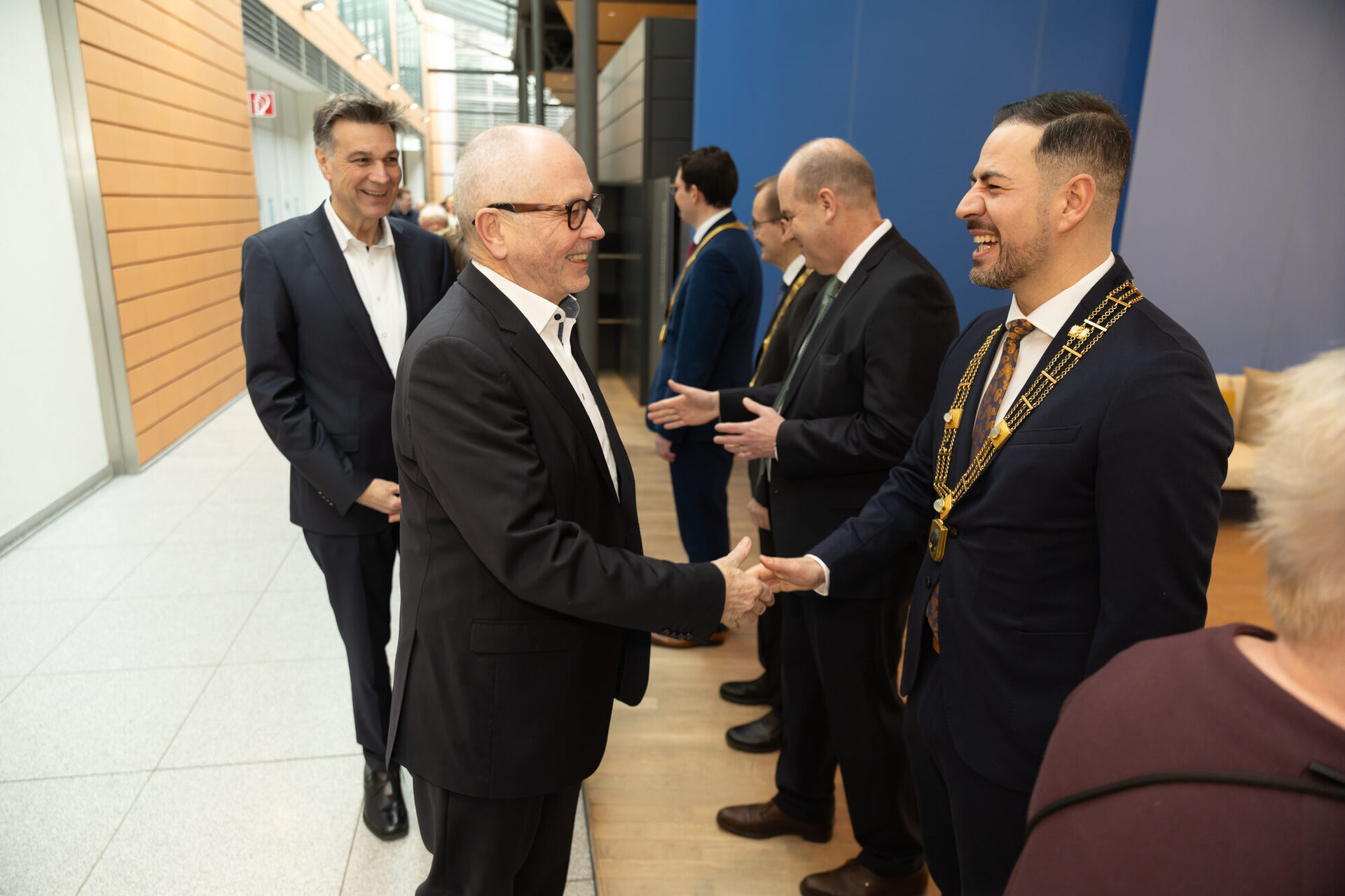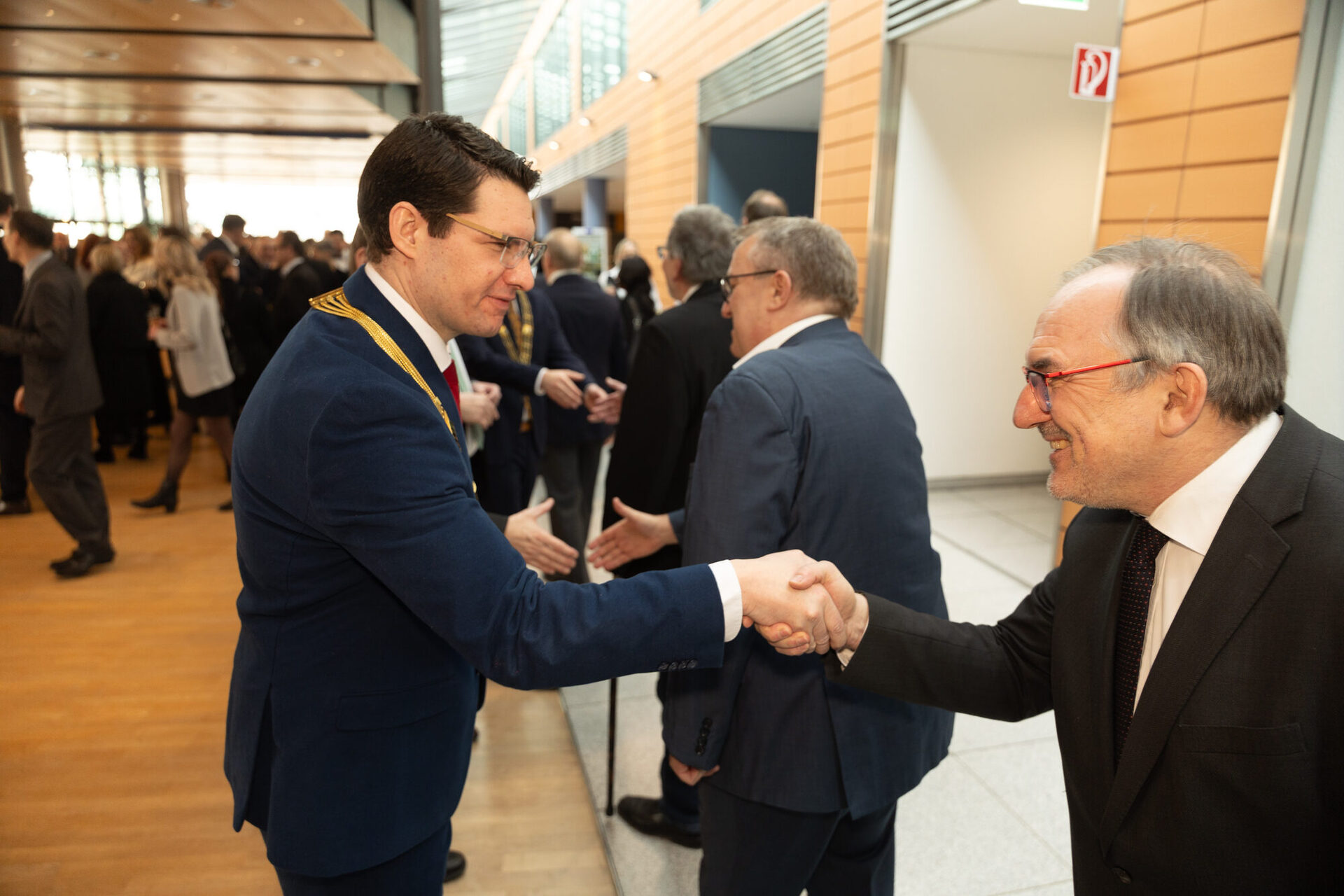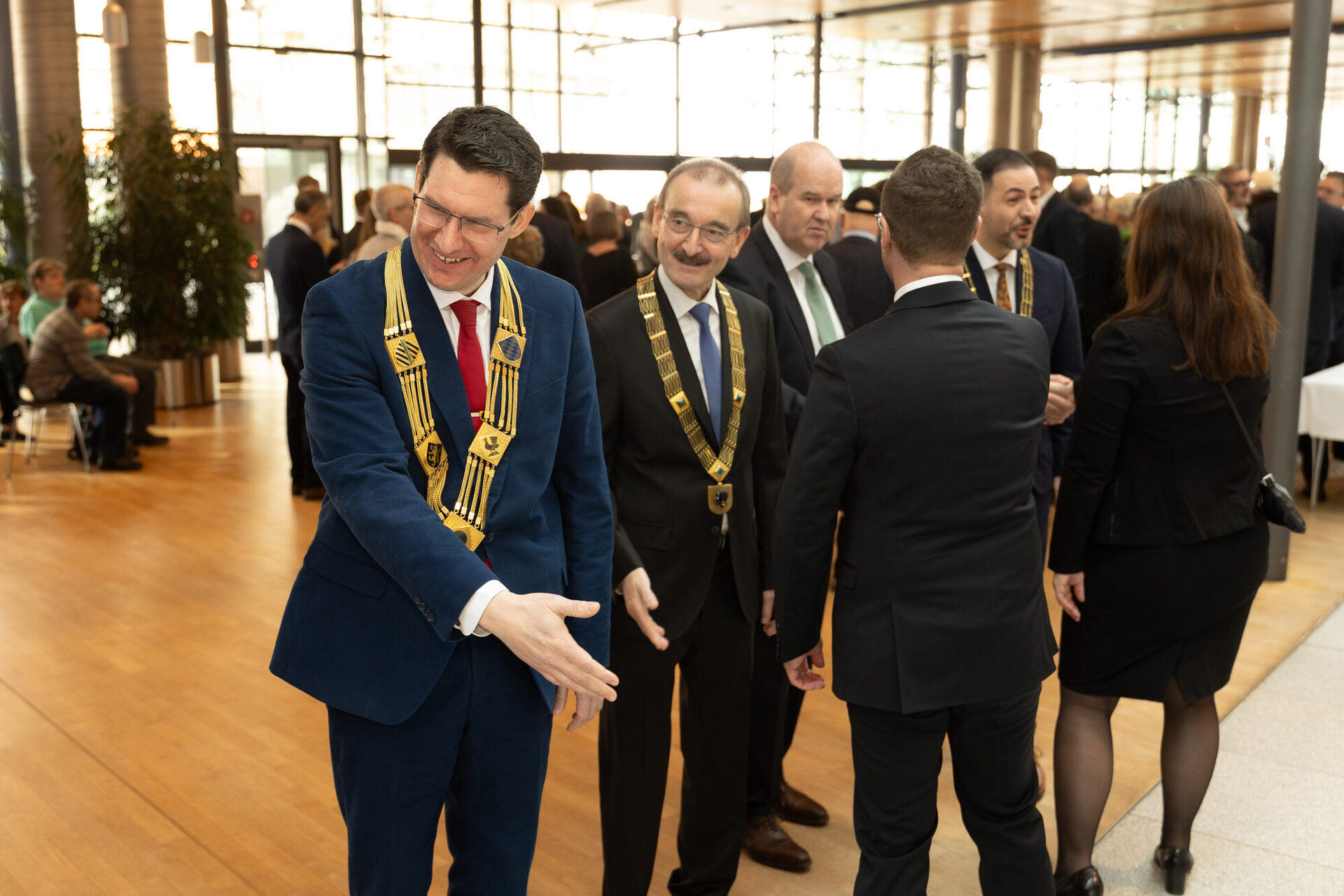 Der Neujahrsempfang stand im Zeichen der Wertschätzung für die Coburger Wirtschaft – in ihrer ganzen Bandbreite. Ob international tätige Industrieunternehmen wie BROSE, LASCO oder KAPP, regionale Banken, engagierte Handwerksbetriebe, Hidden Champions oder junge Start-ups: Sie alle tragen dazu bei, Coburg lebenswert zu machen.