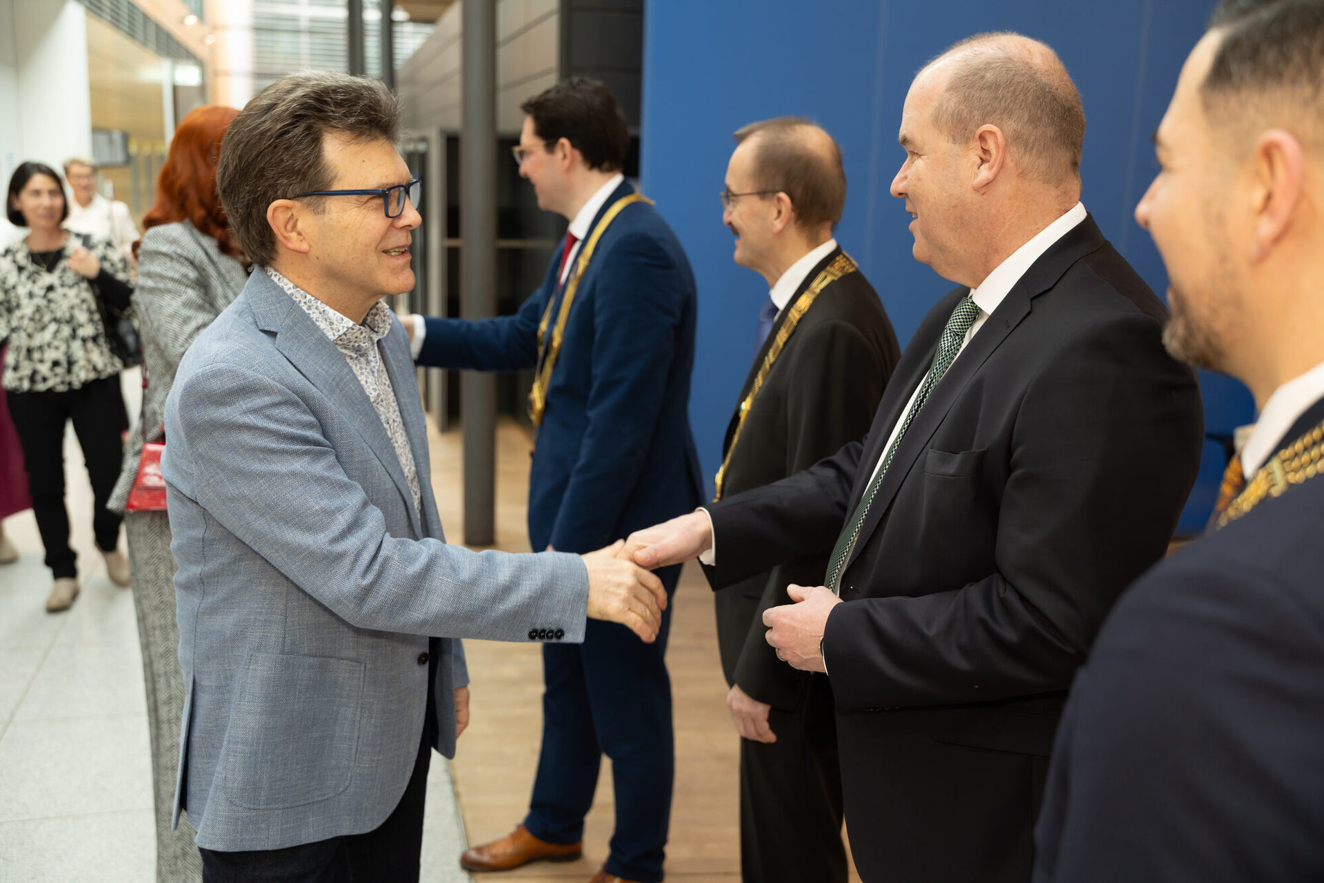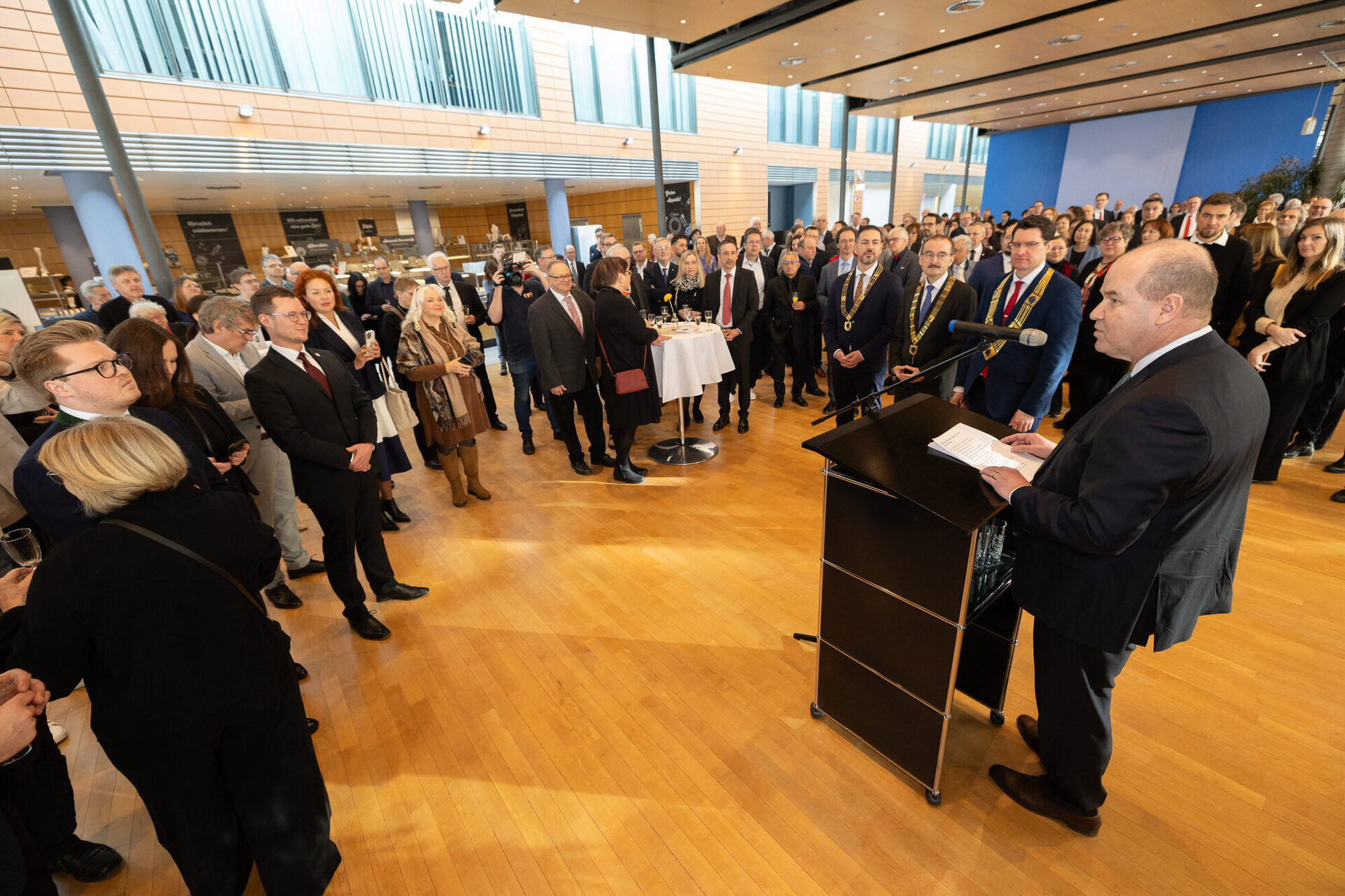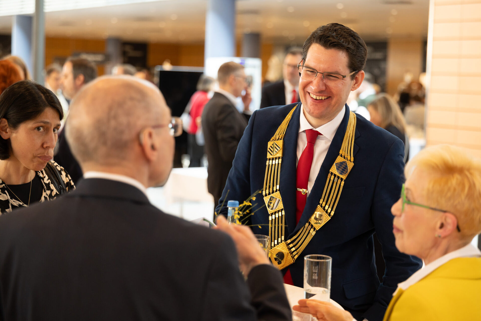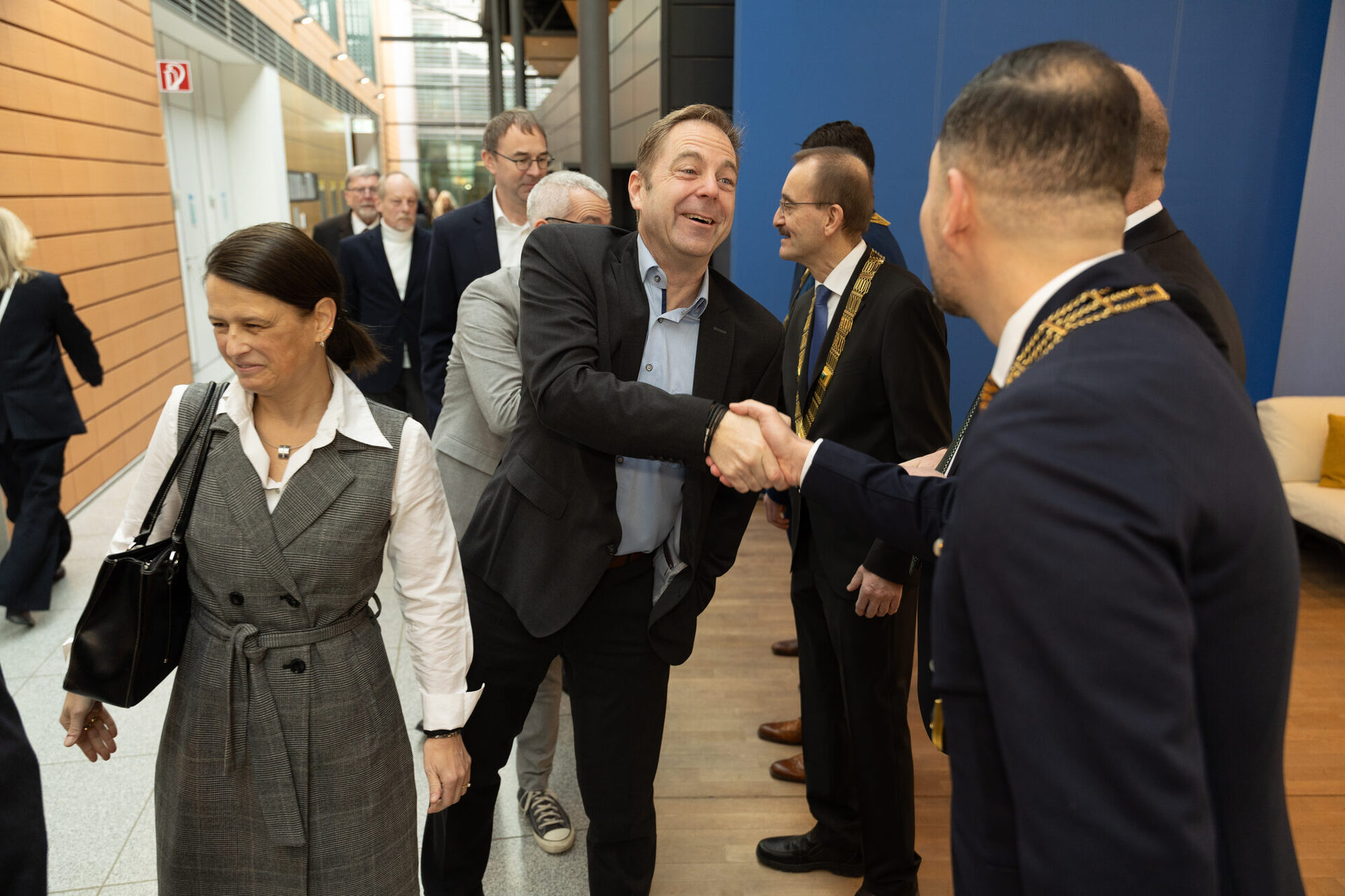 Der Neujahrsempfang stand im Zeichen der Wertschätzung für die Coburger Wirtschaft – in ihrer ganzen Bandbreite. Ob international tätige Industrieunternehmen wie BROSE, LASCO oder KAPP, regionale Banken, engagierte Handwerksbetriebe, Hidden Champions oder junge Start-ups: Sie alle tragen dazu bei, Coburg lebenswert zu machen.