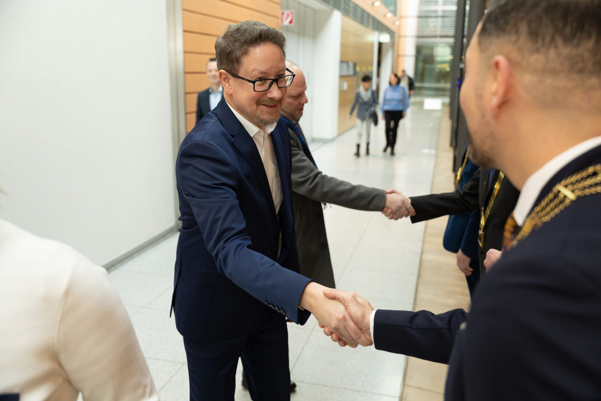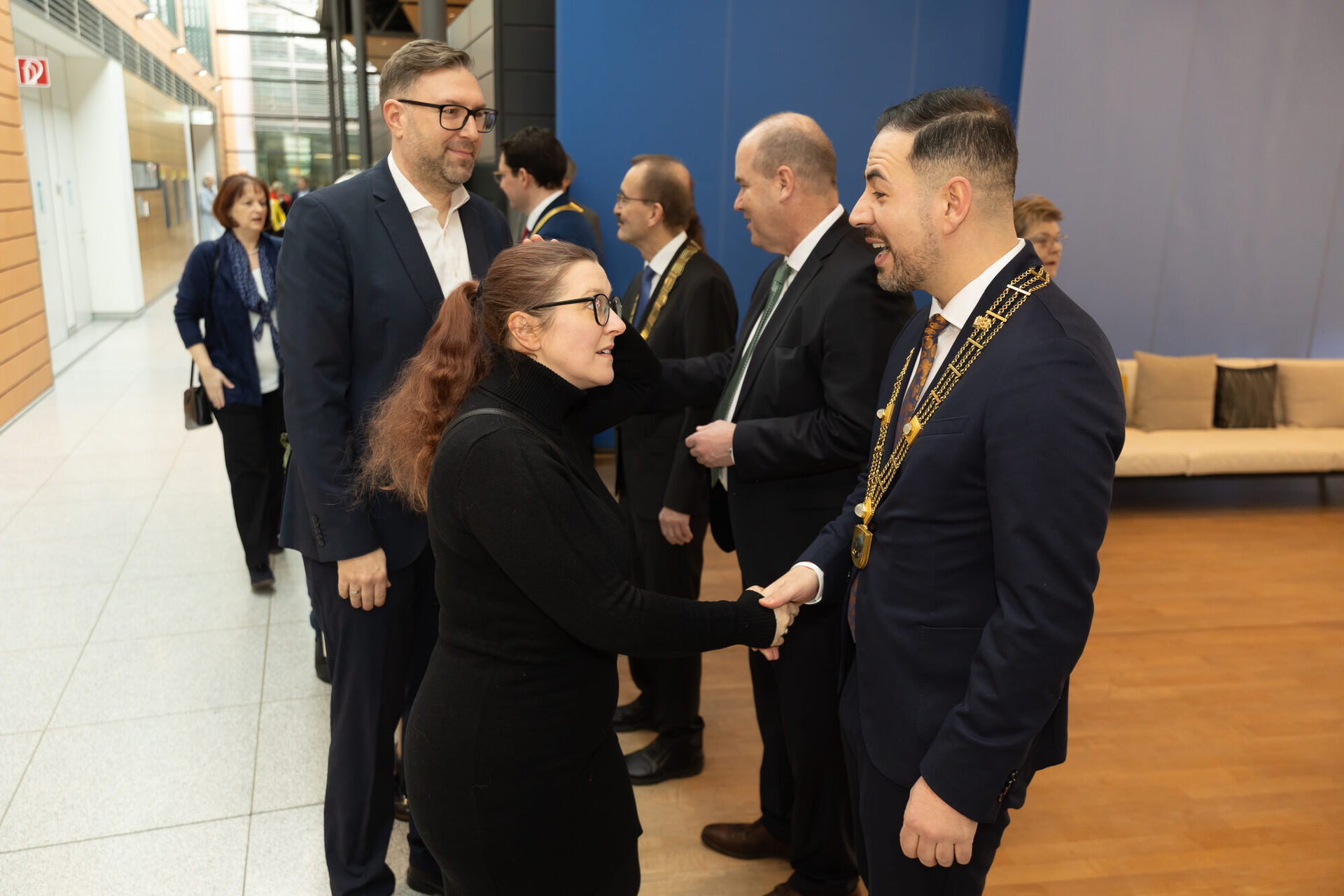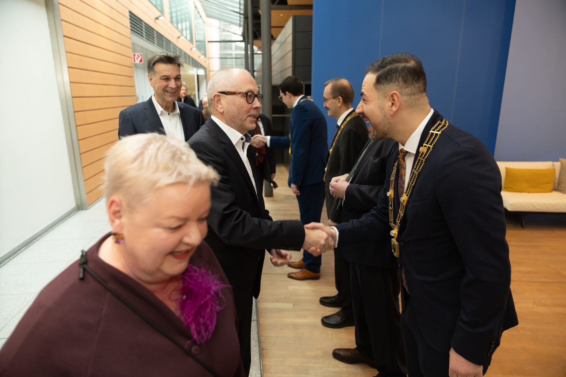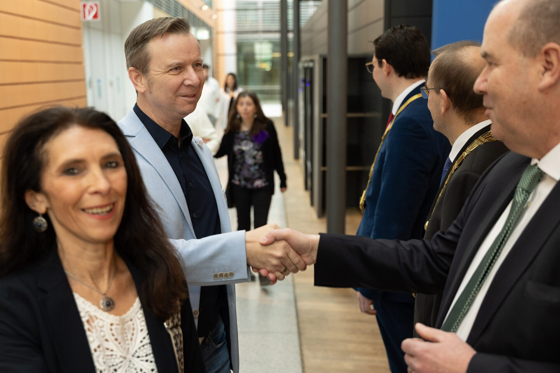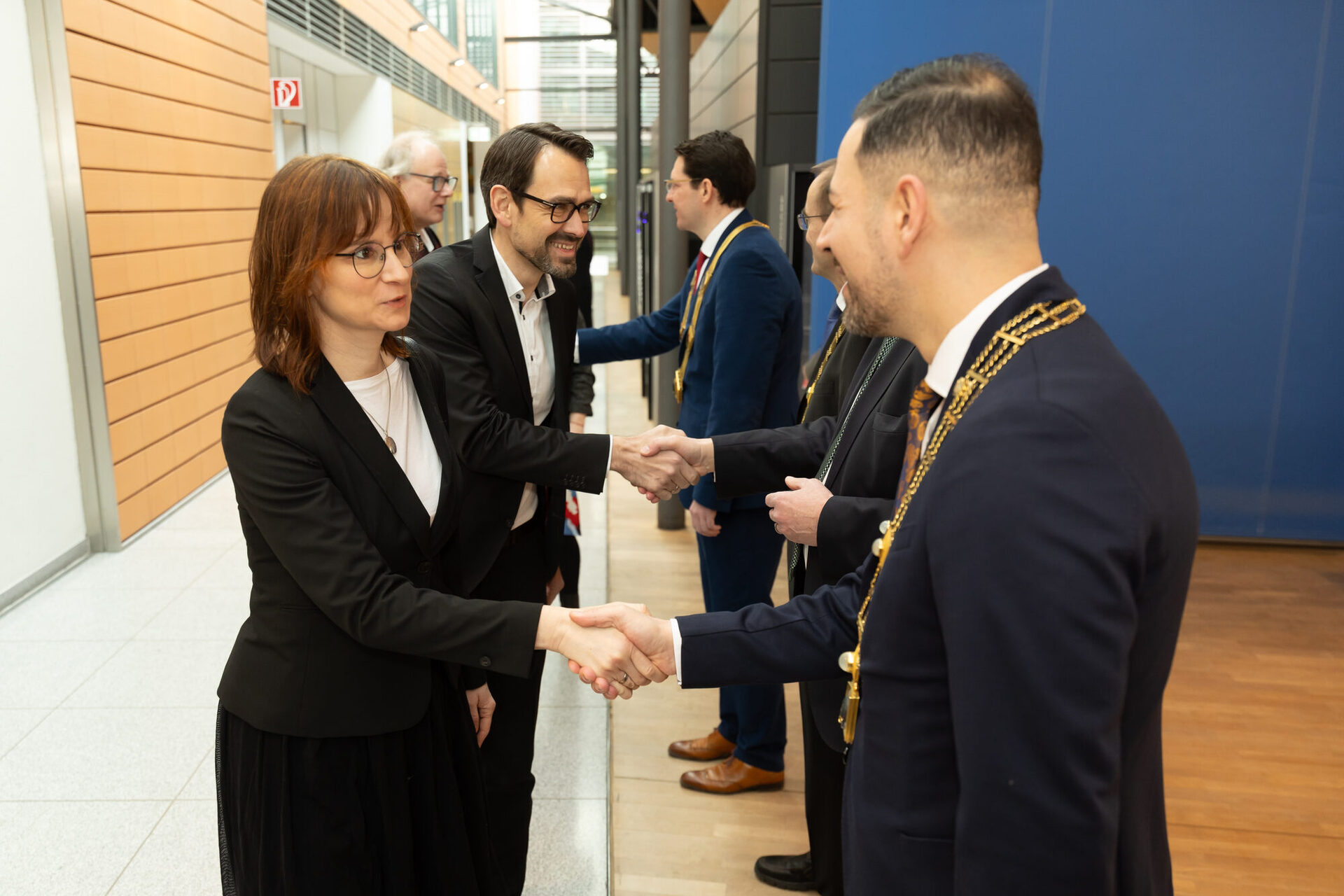 Der Neujahrsempfang stand im Zeichen der Wertschätzung für die Coburger Wirtschaft – in ihrer ganzen Bandbreite. Ob international tätige Industrieunternehmen wie BROSE, LASCO oder KAPP, regionale Banken, engagierte Handwerksbetriebe, Hidden Champions oder junge Start-ups: Sie alle tragen dazu bei, Coburg lebenswert zu machen.