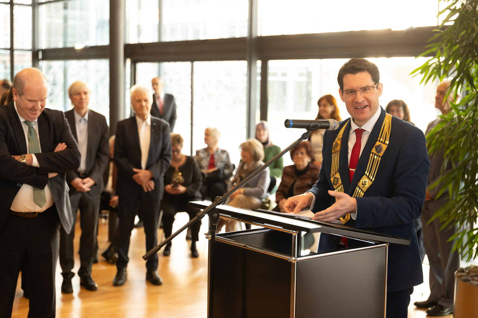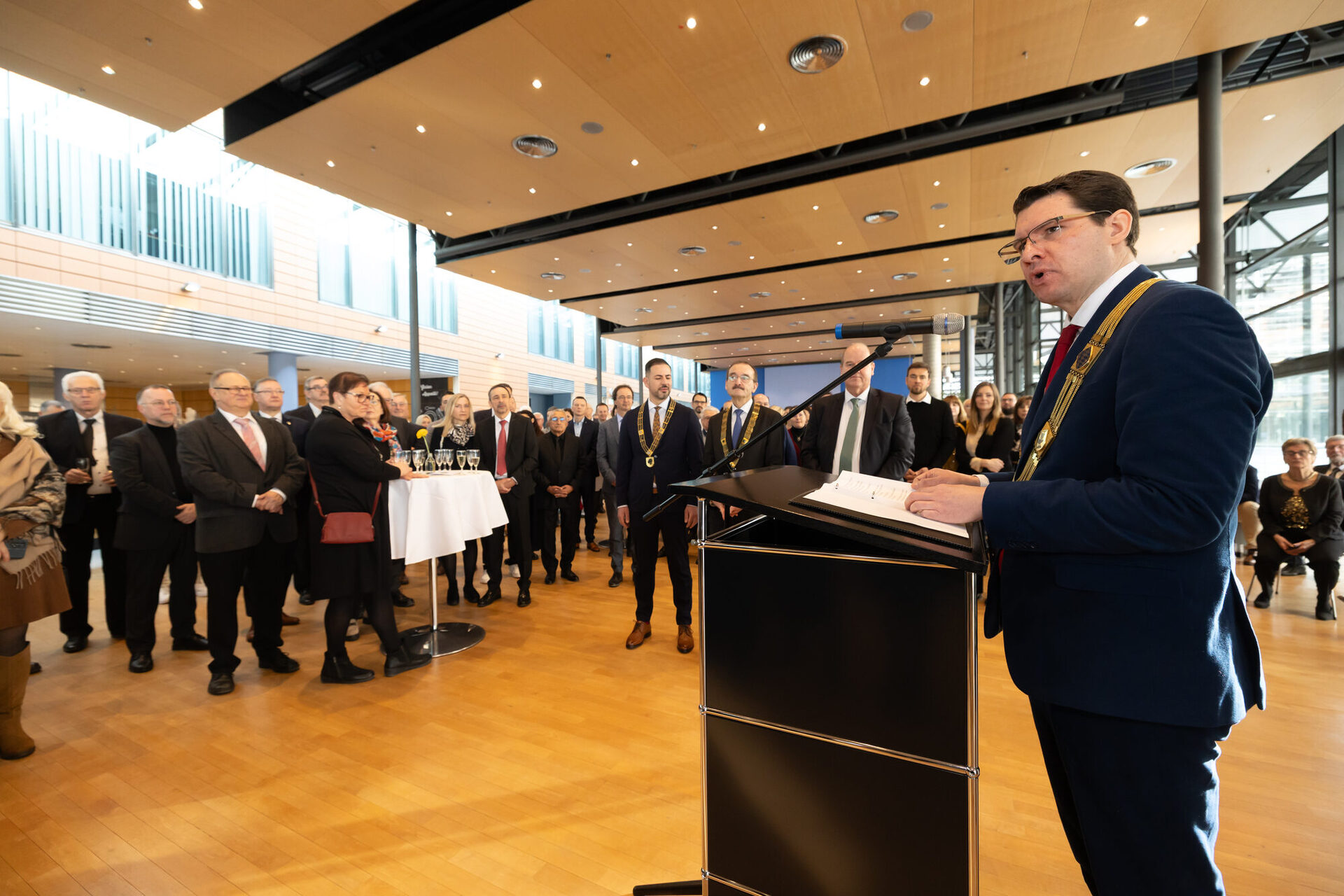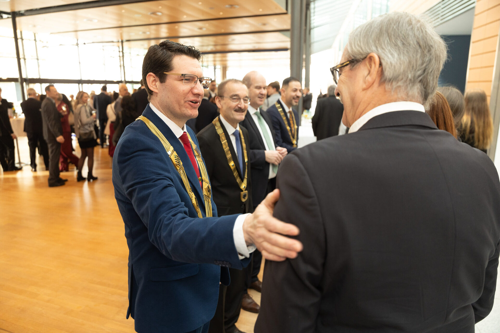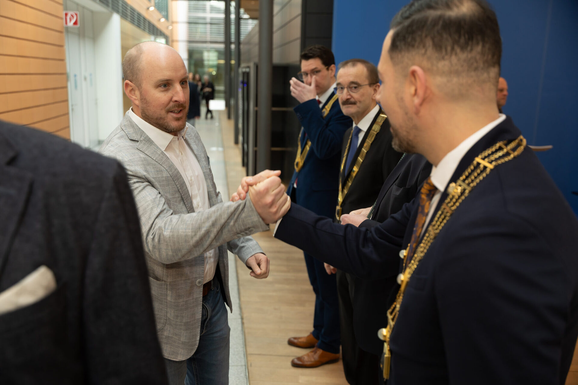 Der Neujahrsempfang stand im Zeichen der Wertschätzung für die Coburger Wirtschaft – in ihrer ganzen Bandbreite. Ob international tätige Industrieunternehmen wie BROSE, LASCO oder KAPP, regionale Banken, engagierte Handwerksbetriebe, Hidden Champions oder junge Start-ups: Sie alle tragen dazu bei, Coburg lebenswert zu machen.