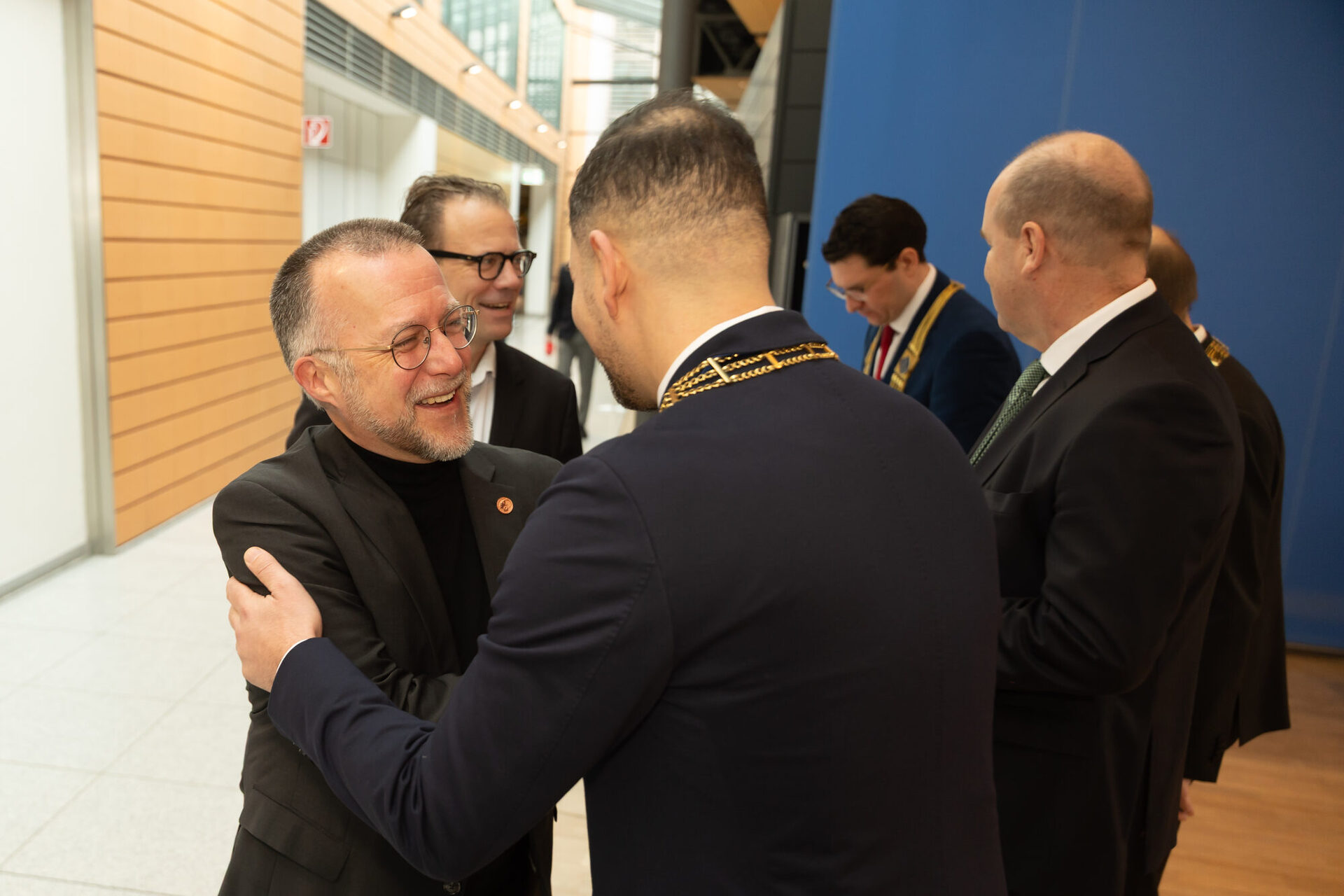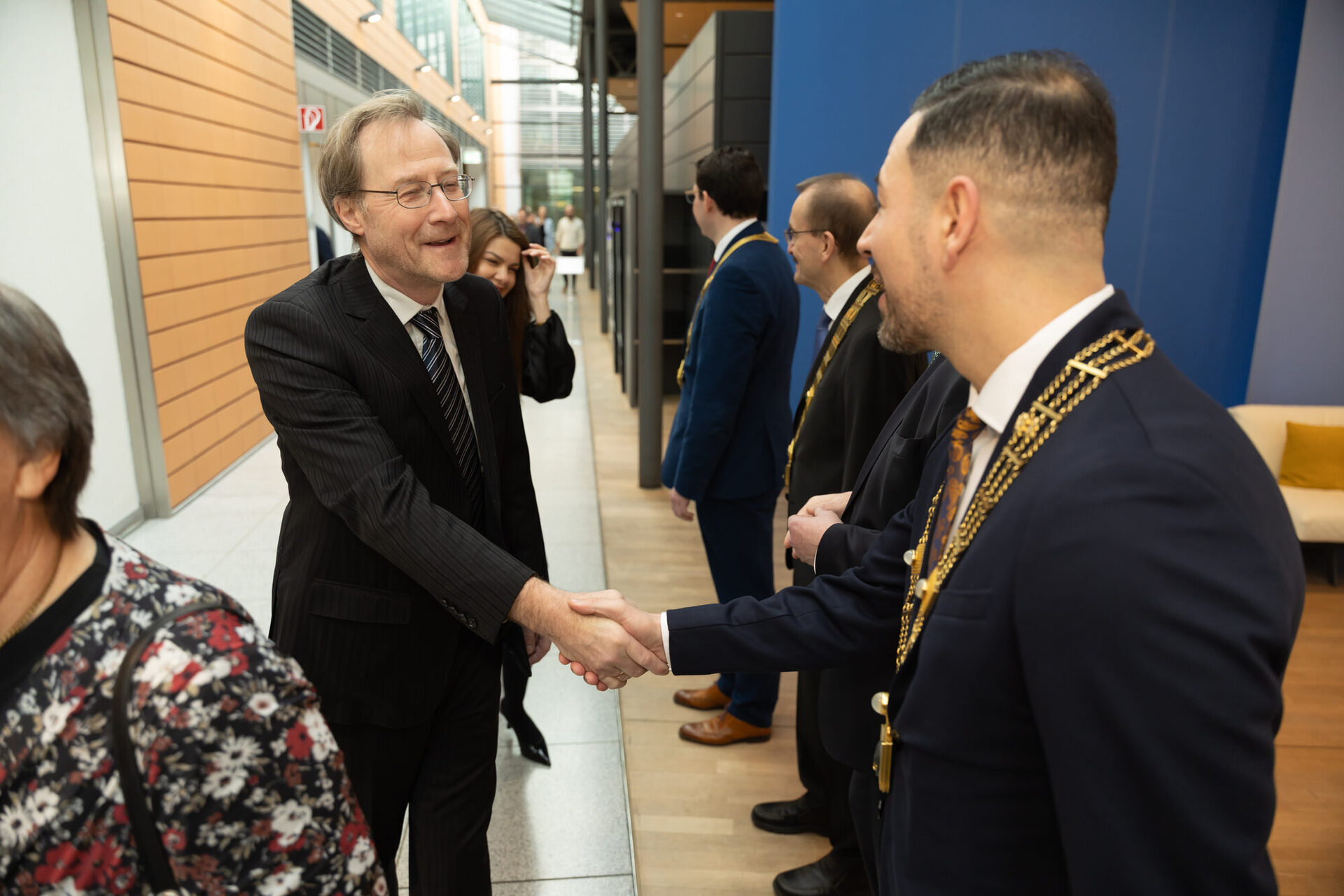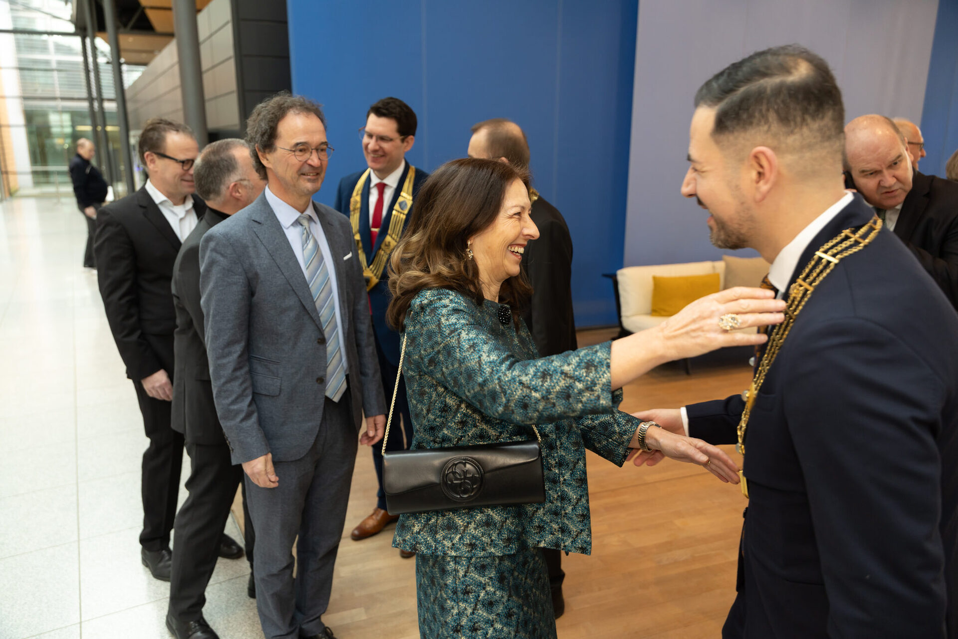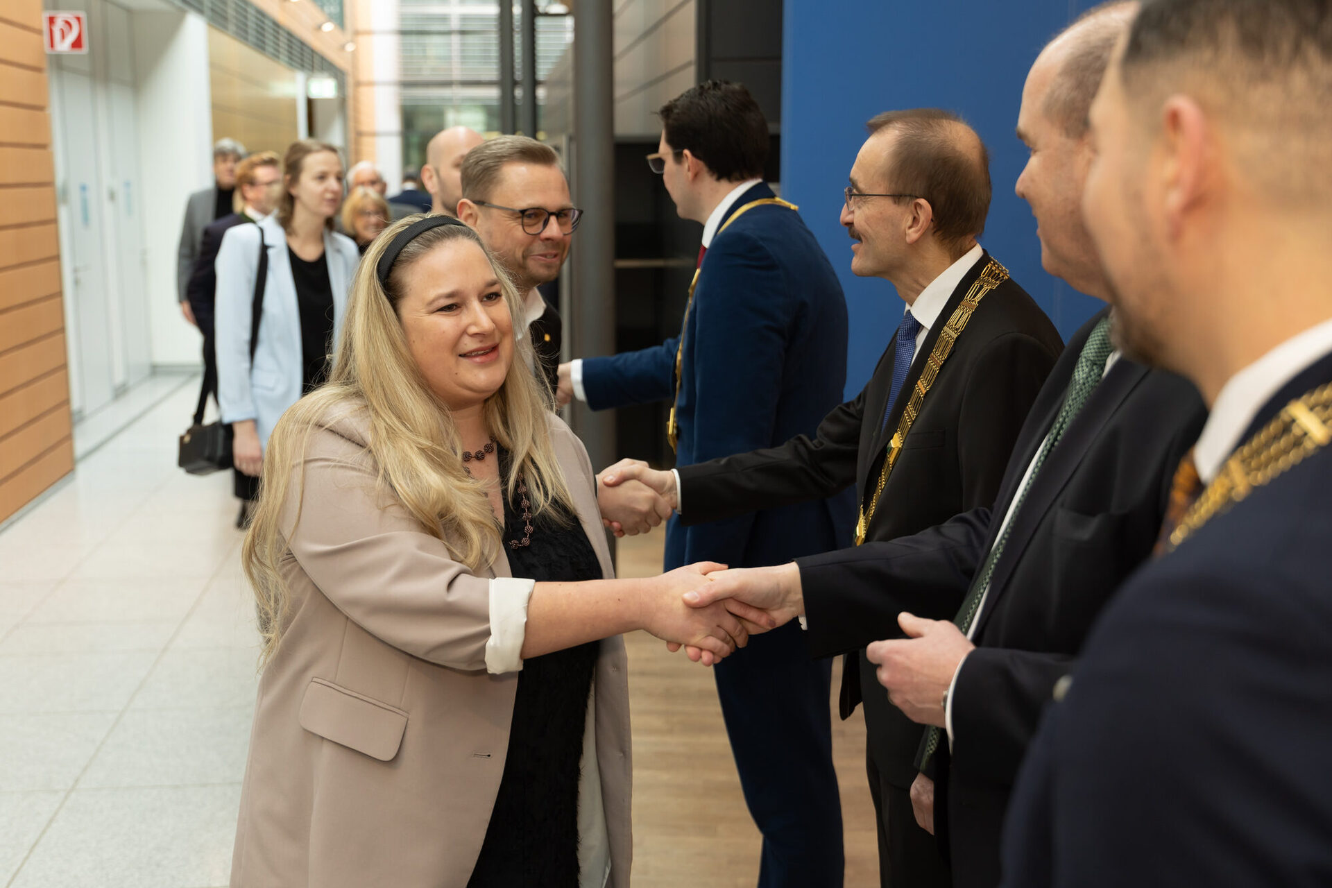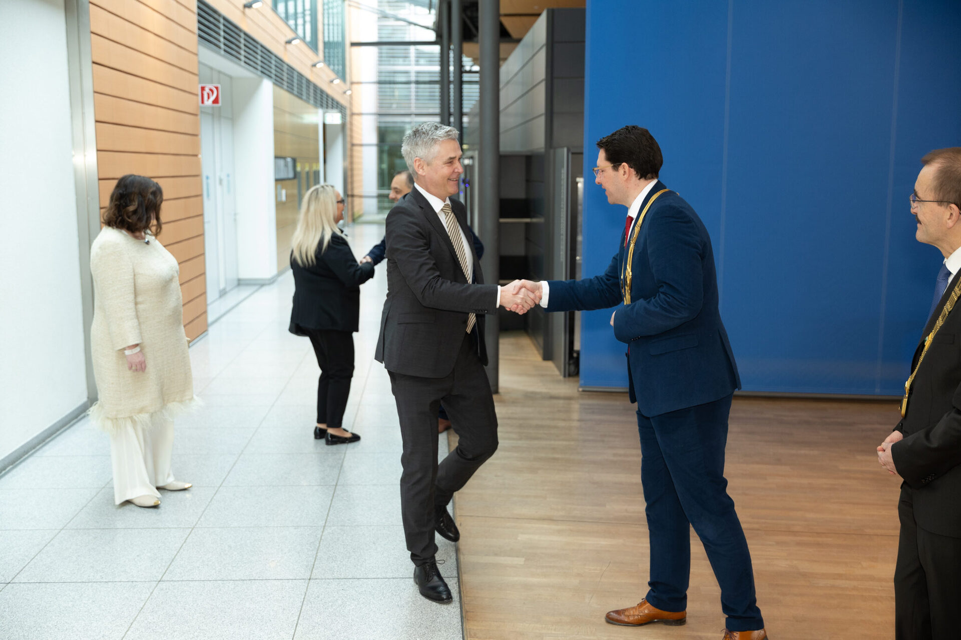 Der Neujahrsempfang stand im Zeichen der Wertschätzung für die Coburger Wirtschaft – in ihrer ganzen Bandbreite. Ob international tätige Industrieunternehmen wie BROSE, LASCO oder KAPP, regionale Banken, engagierte Handwerksbetriebe, Hidden Champions oder junge Start-ups: Sie alle tragen dazu bei, Coburg lebenswert zu machen.