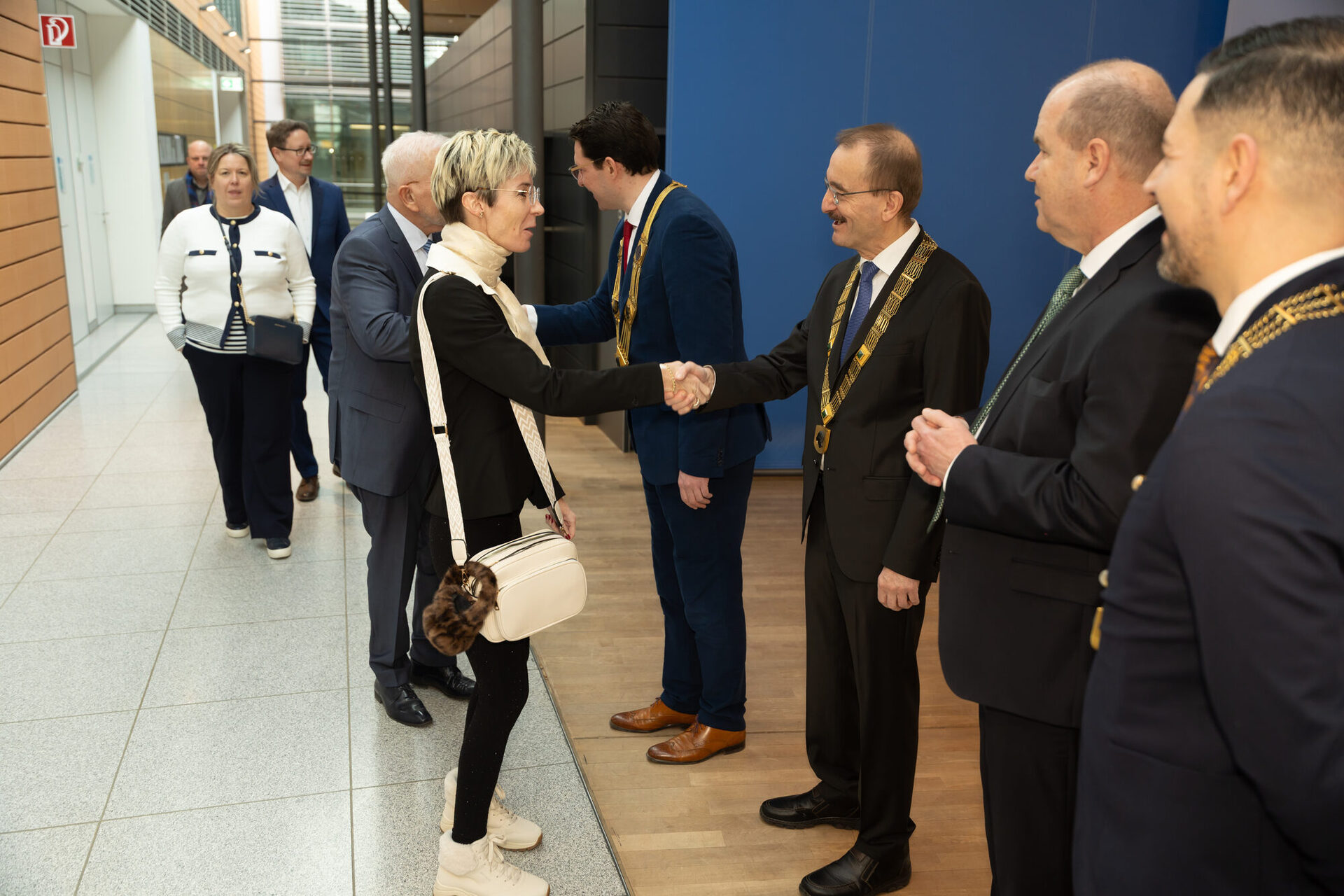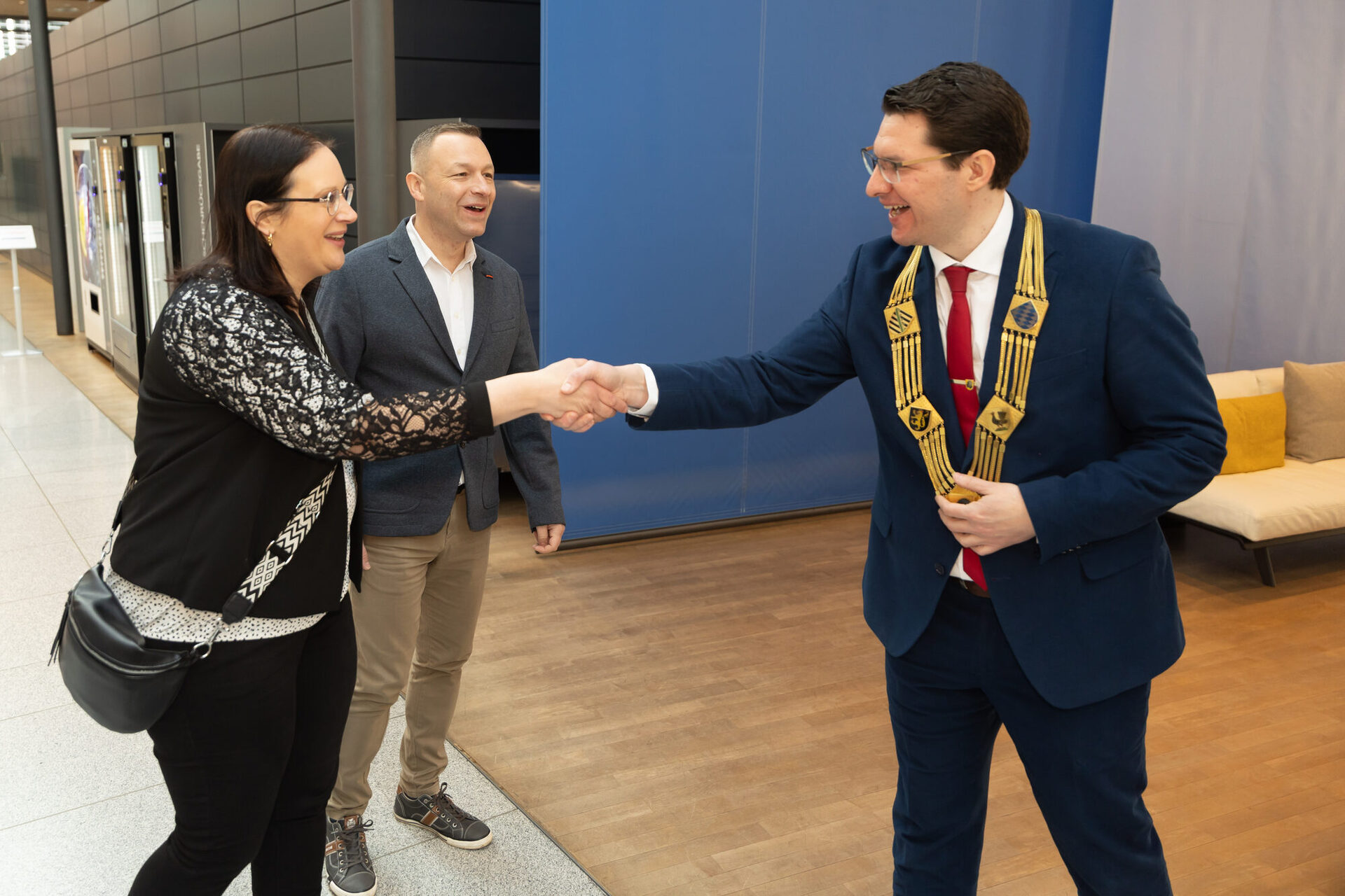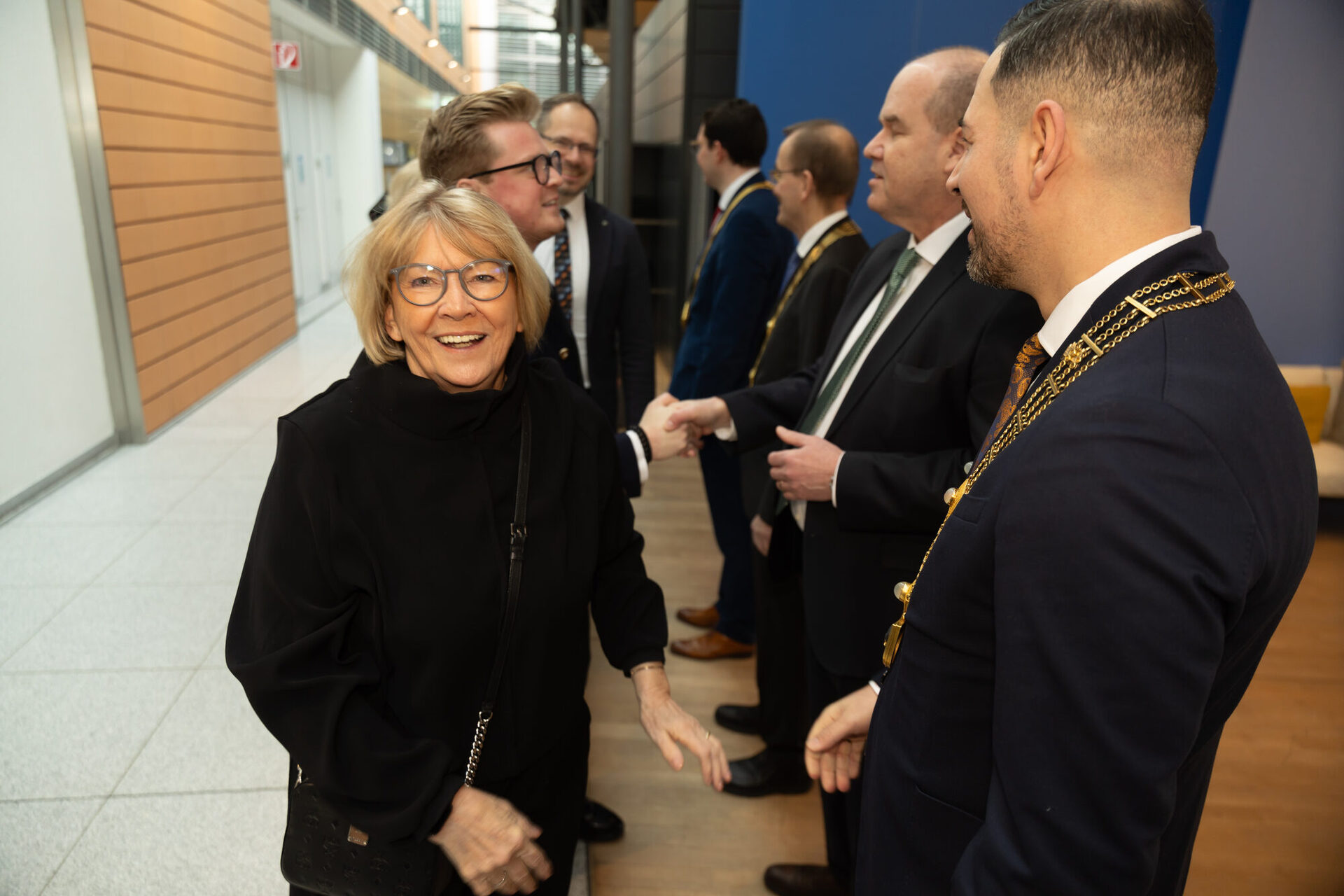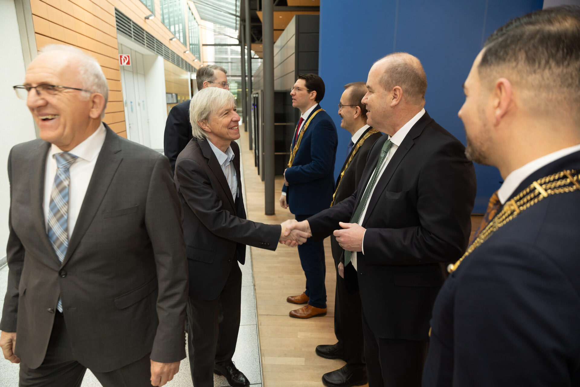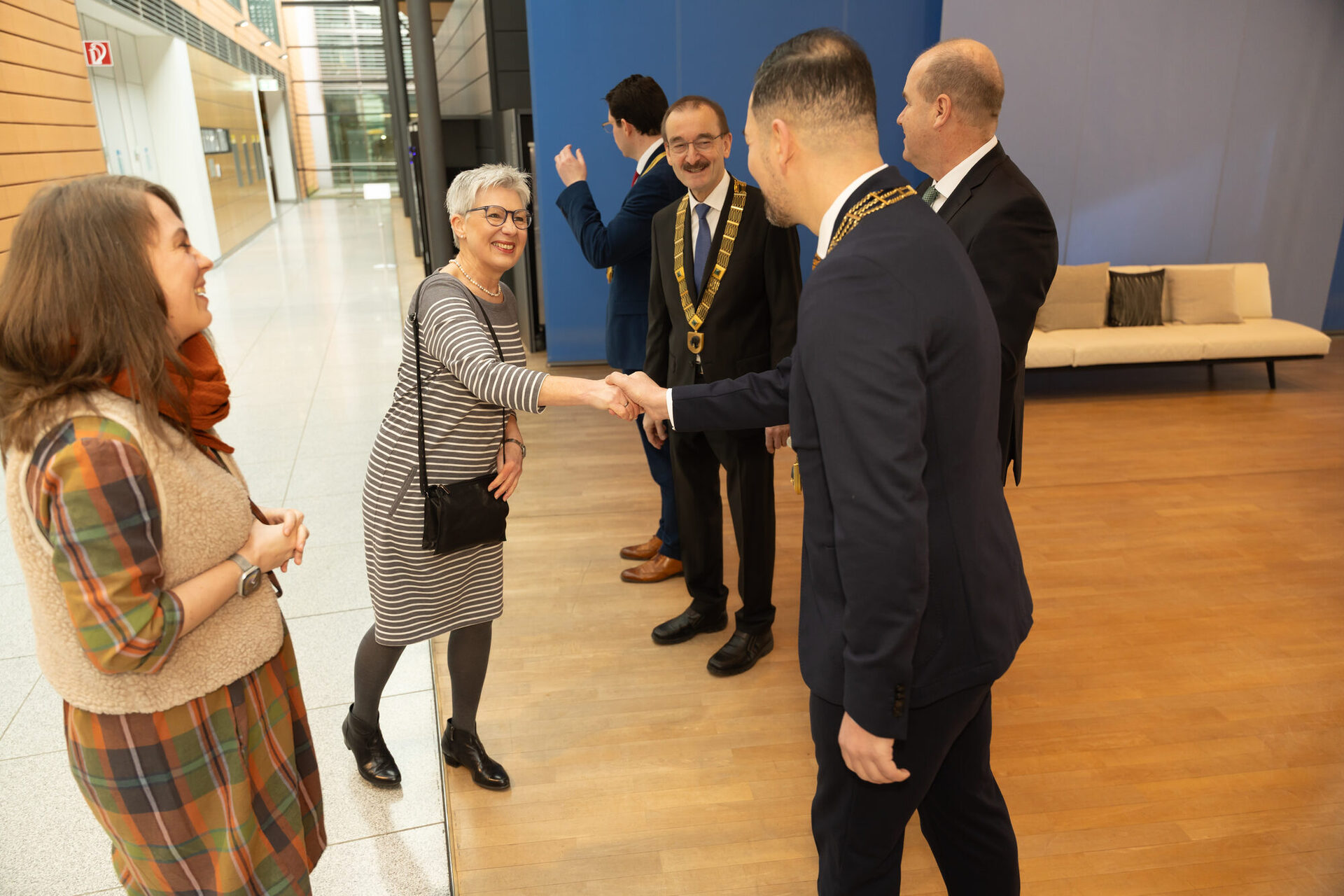 Der Neujahrsempfang stand im Zeichen der Wertschätzung für die Coburger Wirtschaft – in ihrer ganzen Bandbreite. Ob international tätige Industrieunternehmen wie BROSE, LASCO oder KAPP, regionale Banken, engagierte Handwerksbetriebe, Hidden Champions oder junge Start-ups: Sie alle tragen dazu bei, Coburg lebenswert zu machen.