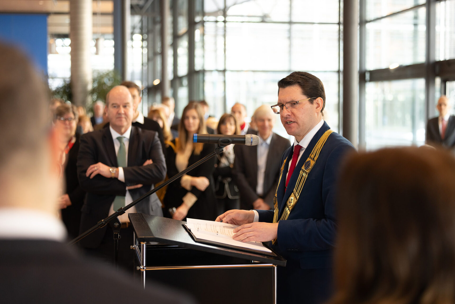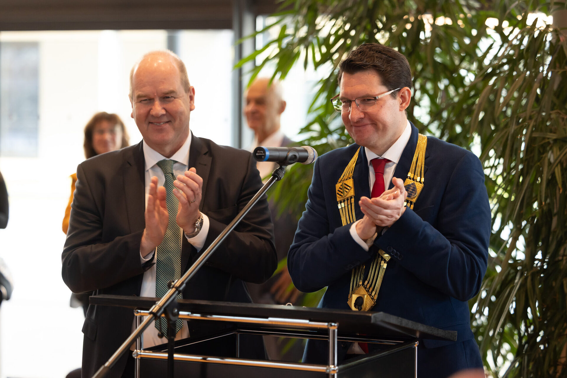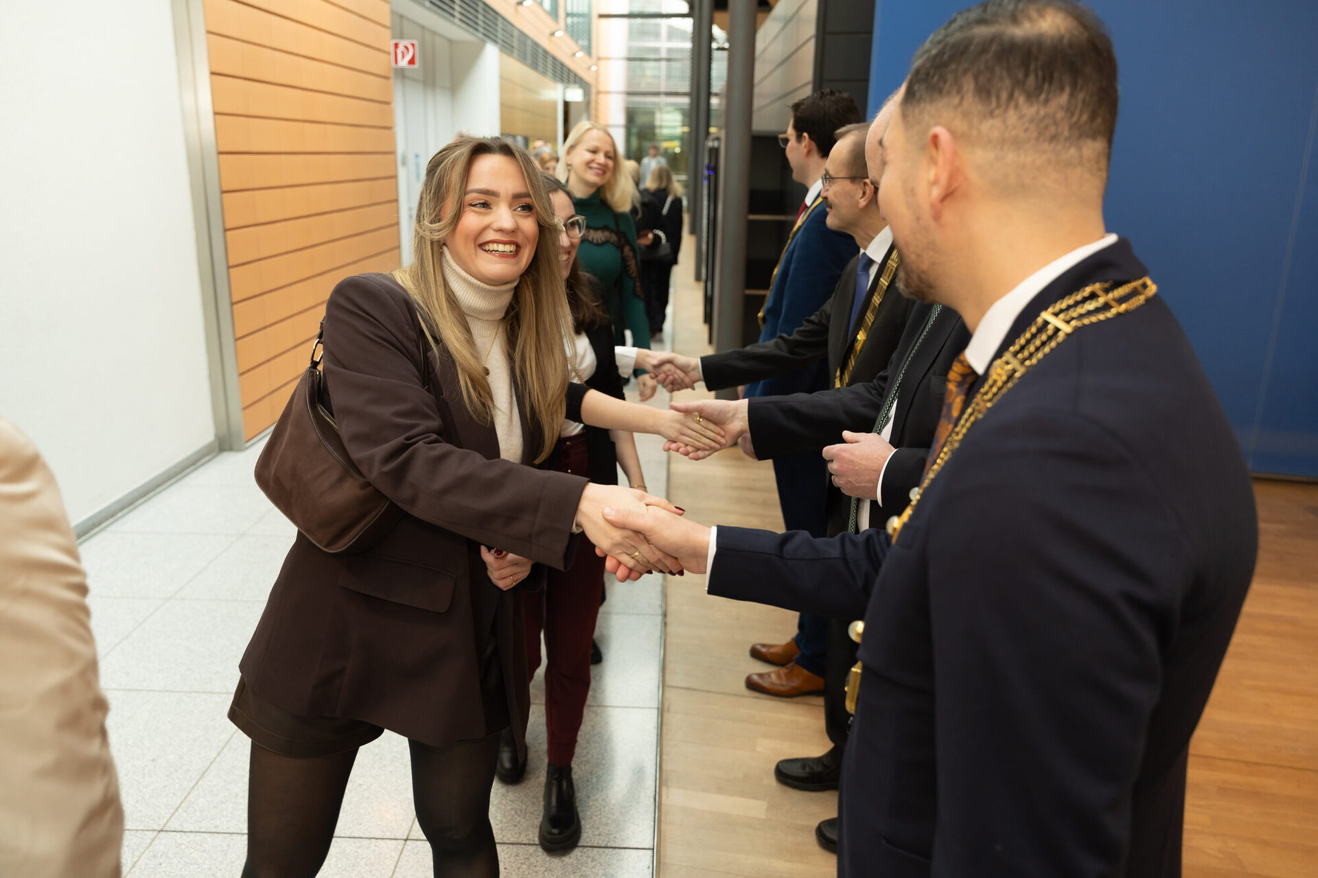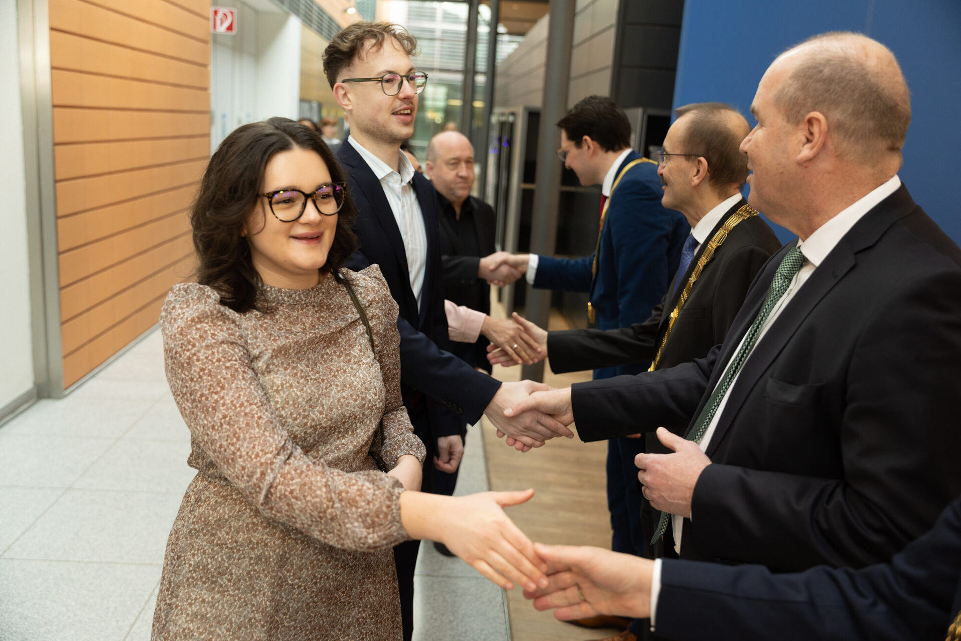 Der Neujahrsempfang stand im Zeichen der Wertschätzung für die Coburger Wirtschaft – in ihrer ganzen Bandbreite. Ob international tätige Industrieunternehmen wie BROSE, LASCO oder KAPP, regionale Banken, engagierte Handwerksbetriebe, Hidden Champions oder junge Start-ups: Sie alle tragen dazu bei, Coburg lebenswert zu machen.