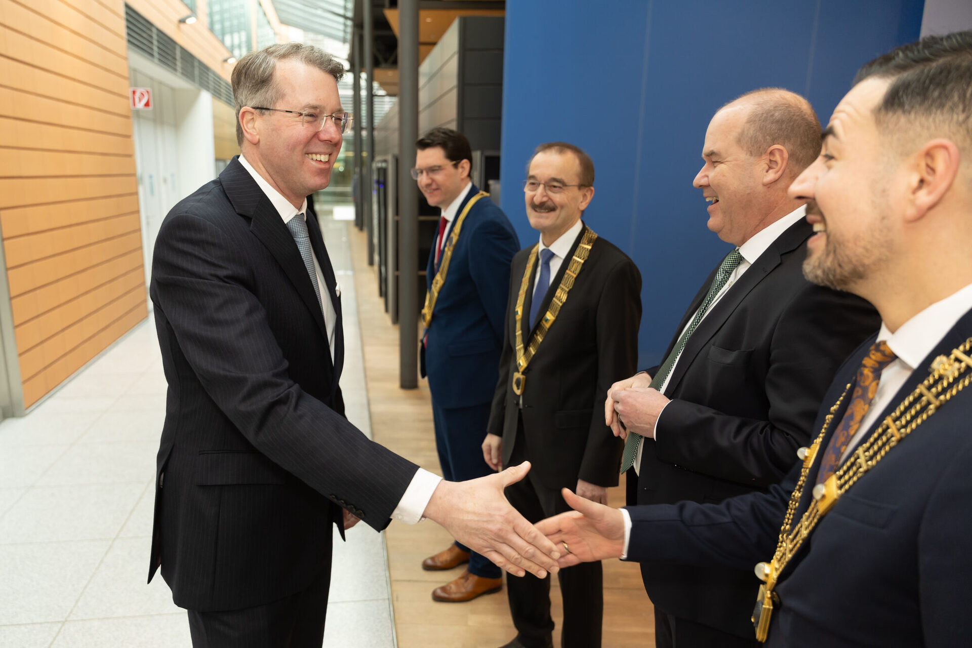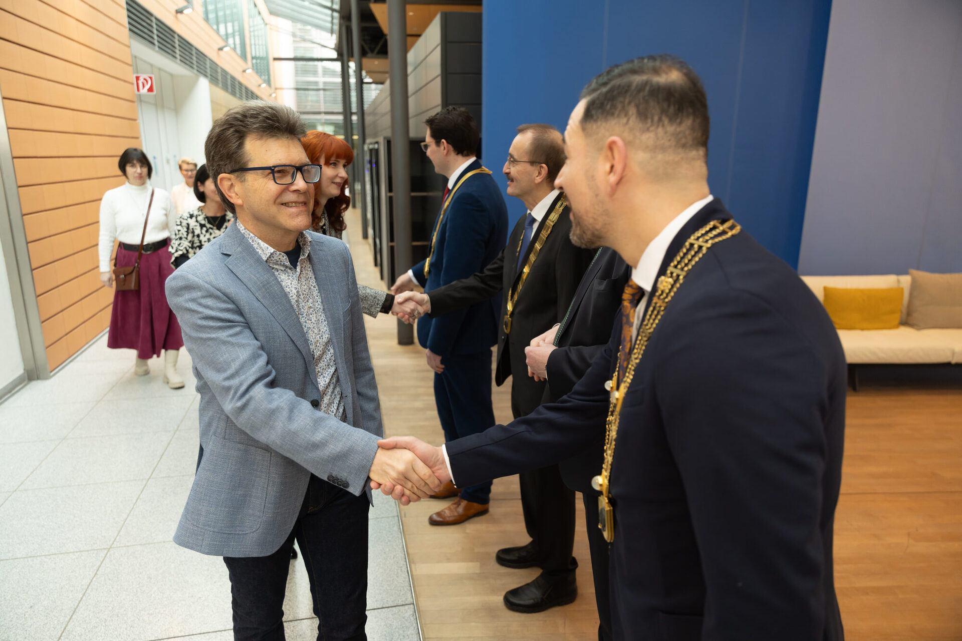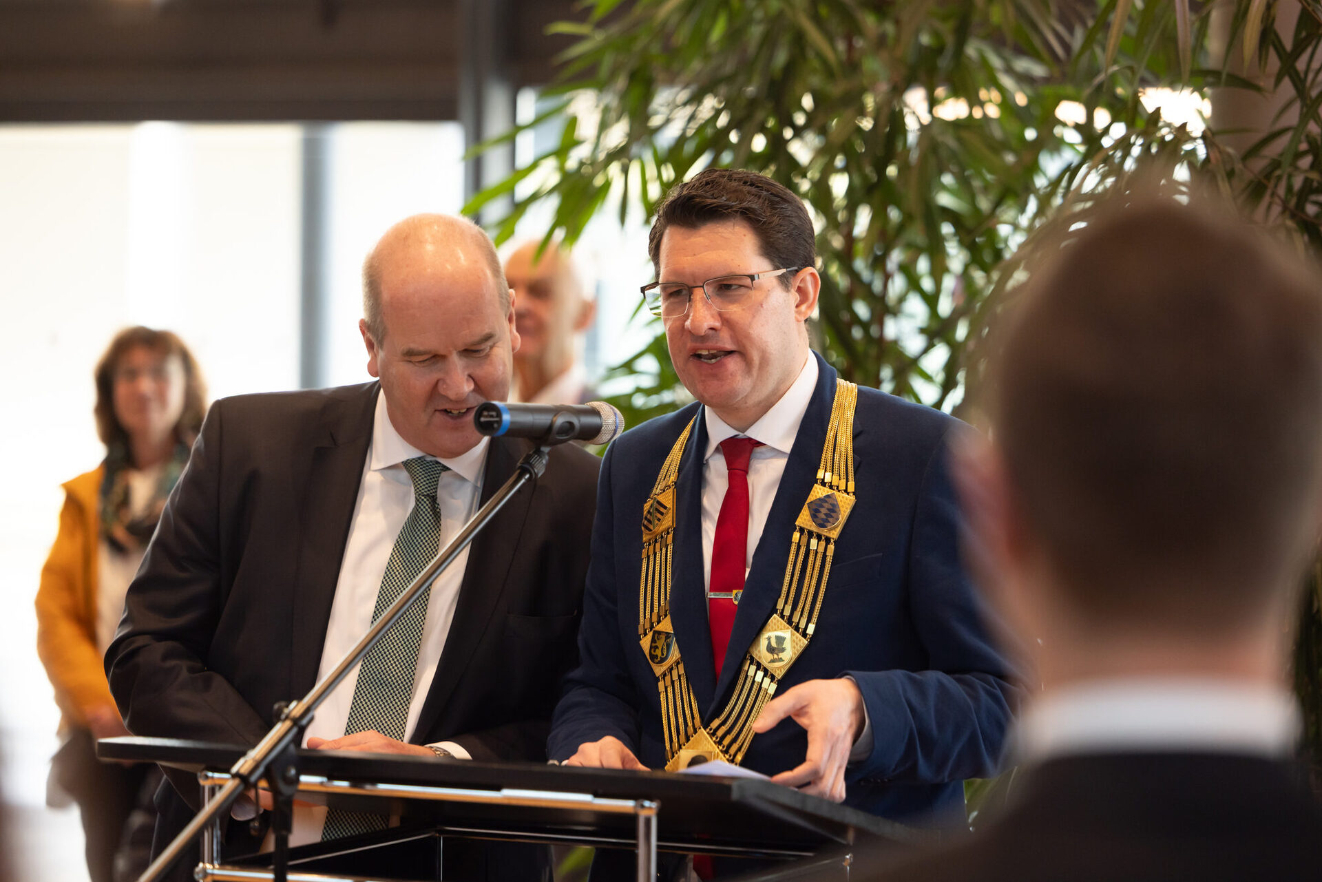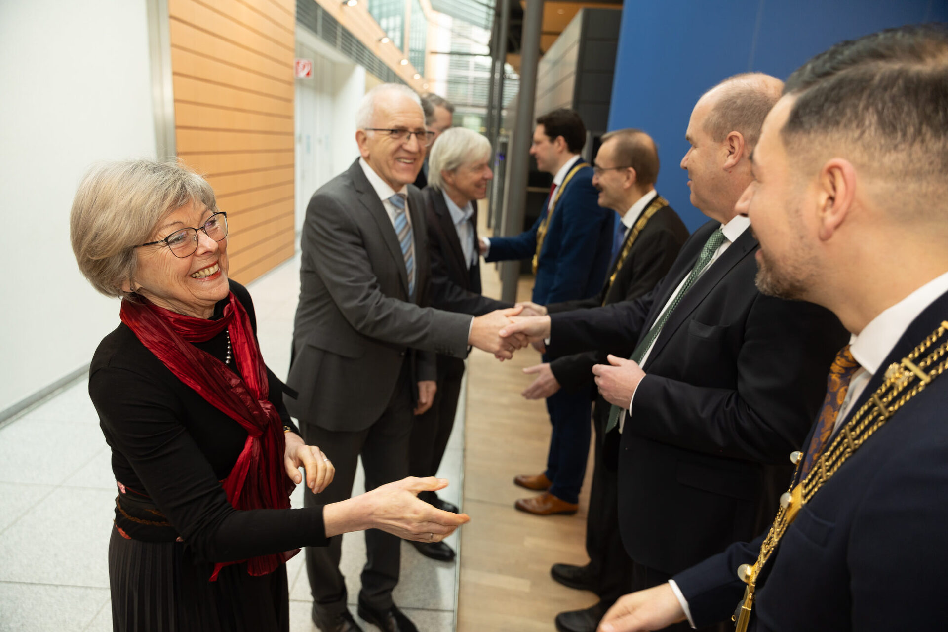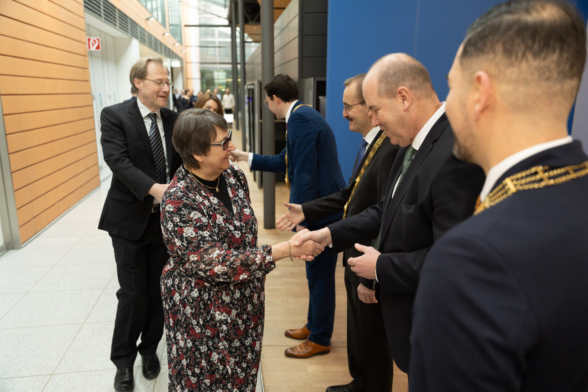 Der Neujahrsempfang stand im Zeichen der Wertschätzung für die Coburger Wirtschaft – in ihrer ganzen Bandbreite. Ob international tätige Industrieunternehmen wie BROSE, LASCO oder KAPP, regionale Banken, engagierte Handwerksbetriebe, Hidden Champions oder junge Start-ups: Sie alle tragen dazu bei, Coburg lebenswert zu machen.