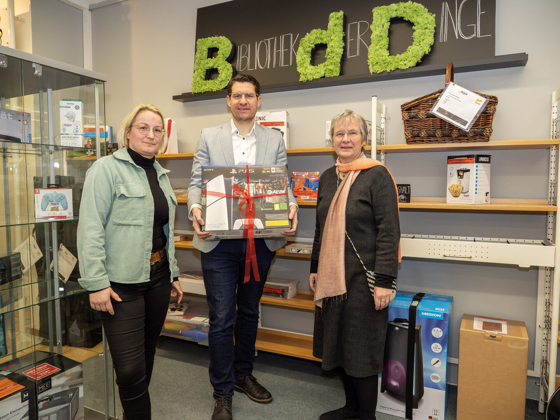 Die Bibliothek der Dinge ergänzt das klassische Medienangebot der Stadtbücherei um Alltagsgegenstände, die man nur gelegentlich braucht oder sich nicht unbedingt selbst anschaffen möchte. Neben Spielekonsolen finden sich dort Werkzeuge, Küchengeräte, Lernmaterialien und Outdoor-Equipment. Das spart Geld, schont Ressourcen und eröffnet zugleich mehr Menschen den Zugang zu Dingen, die sonst vielleicht ungenutzt in Schränken liegen würden oder gar nicht erst gekauft werden könnten.