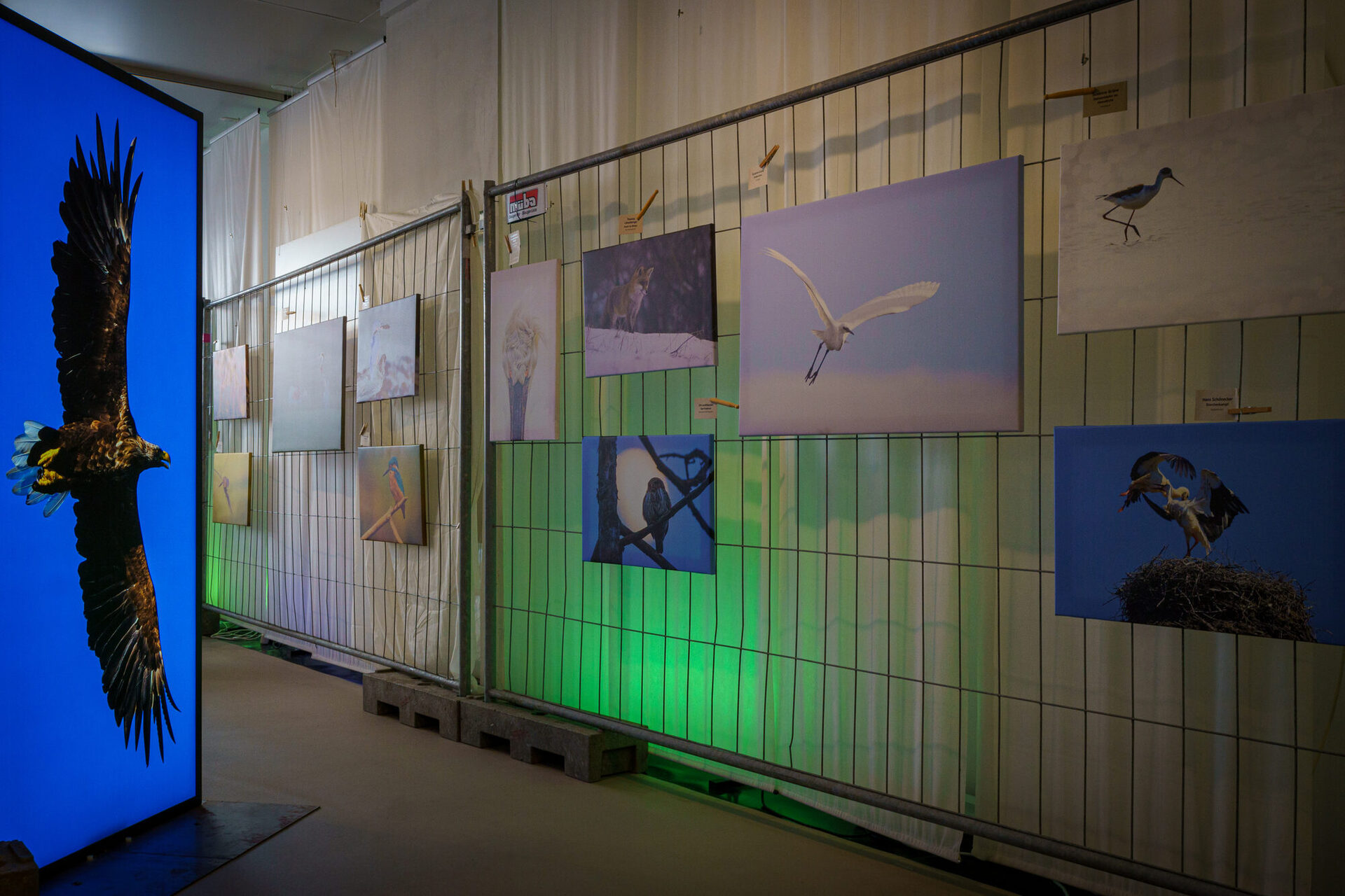 14 Fotograf*innen präsentieren jeweils fünf ihrer Bilder im großformatigen Druck auf Leinwand. Die Motive reichen von der heimischen Vogelwelt über spektakuläre Fotos von Pilzen bis zu Giraffen in der afrikanischen Savanne.