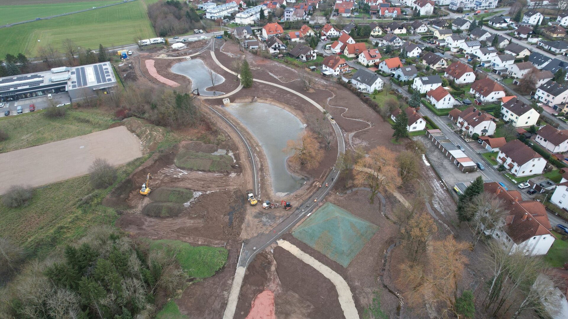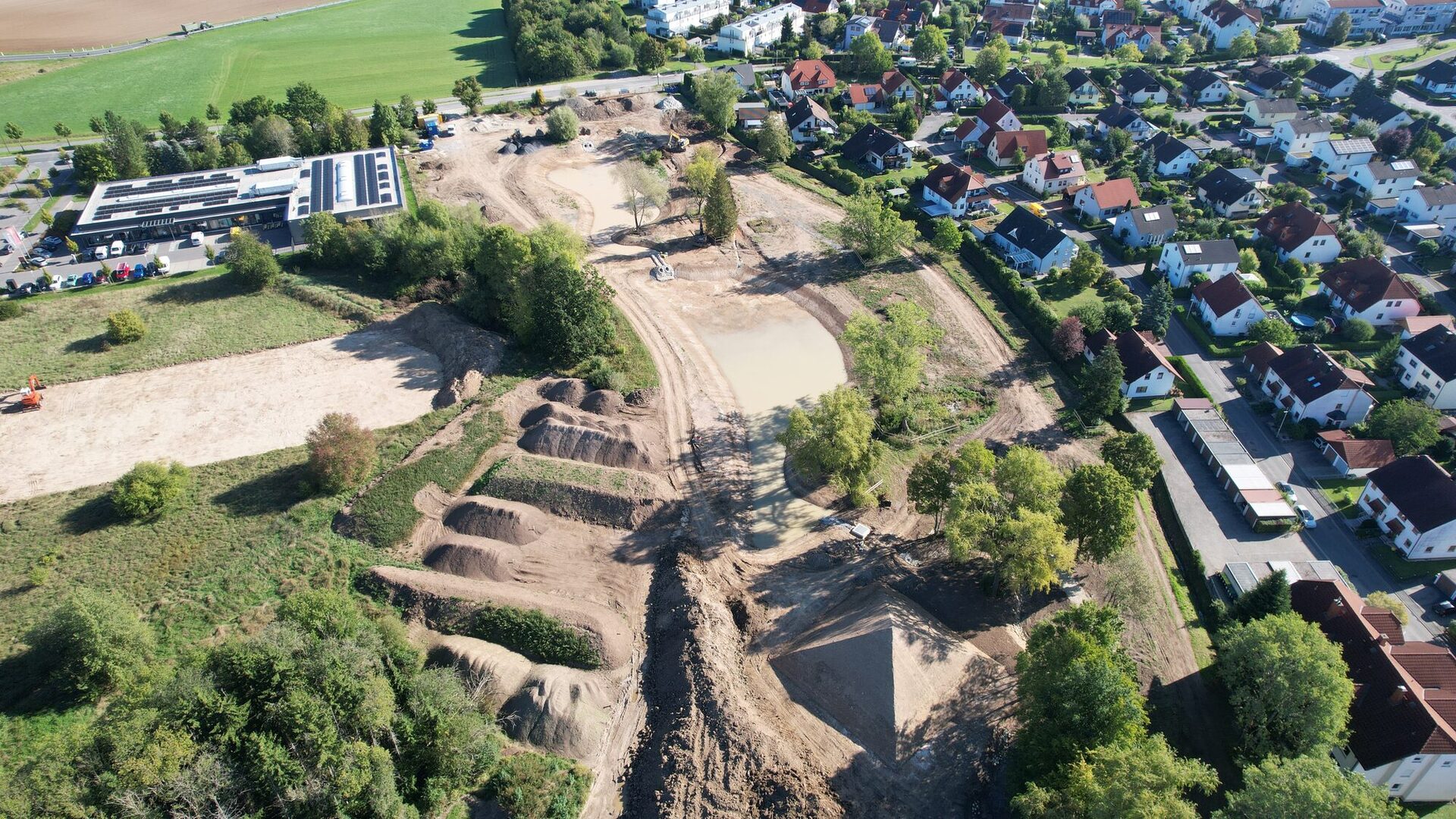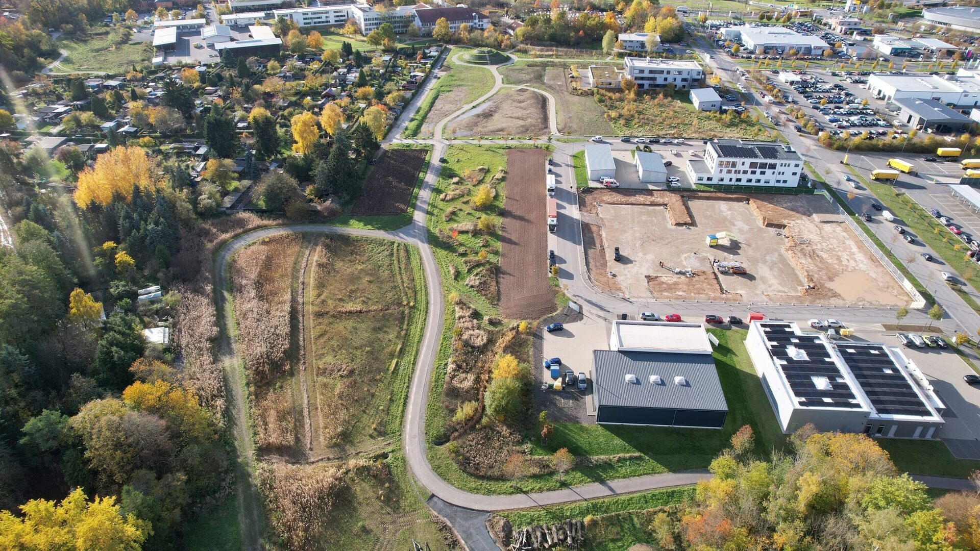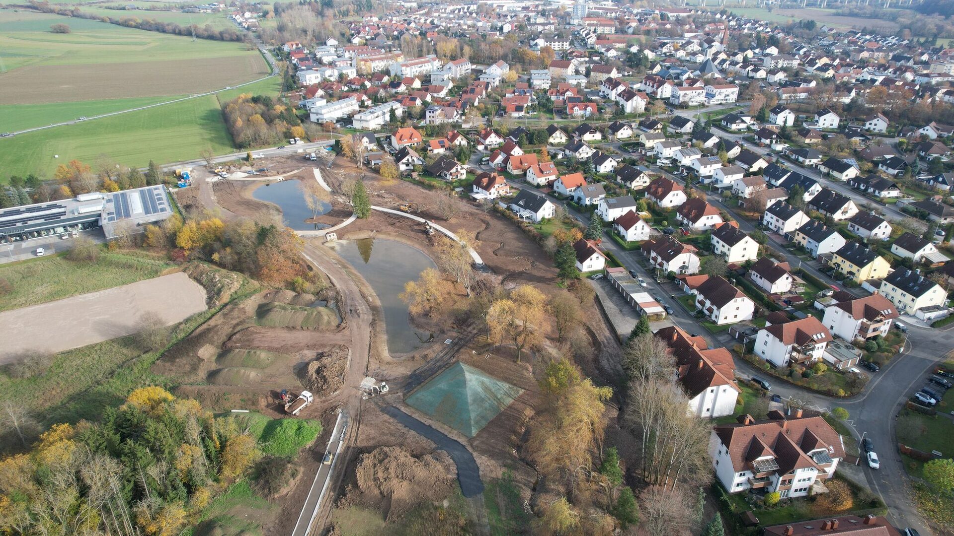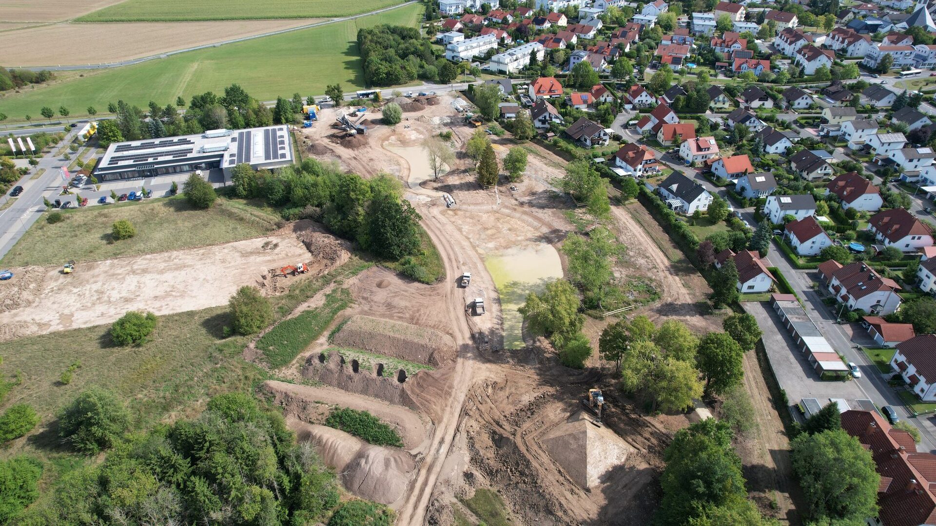 4. Juli 2025: Oberbodenmieten + Aufstandsfläche der quadratischen Pyramide (gekalkt)17. Juli 2025: Der Aufbau der quadratischen Erdpyramide beginnt.17. Juli 2025: Zu erhaltender Baumbestand mit Baumschutzzaun26. August 2025: Überblick Park der Arten, Teilbereich West und Mitte4. September 2025: Überblick Park der Arten, Teilbereich Ost: Quadratische Pyramide wird geformt.4. September 2025: Siebanlage für den Oberboden im Einsatz: Große Wurzelstücke, Grobmaterial, Steine und bodenferne Bestandteile (Kunststoff, Glas, etc.) wurden abgesiebt. Der gesiebte Oberboden ist für den Wiedereinbau vorgesehen.19. September 2025: Oberboden ist gesiebt, Quadratische Pyramide ist geformt.2. Oktober 2025: Die quadratische Pyramide spiegelt sich im Teich 2.30. Oktober 2025: Überblick Park der Arten, Teilbereich West und Mitte: Oberboden im Teilbereich West modelliert, Teilbereich Mitte: Dreifelderwirtschaft gepflügt, Oberbodenauftrag (Abflachung der Böschung) an Garden City Straße vollzogen30. Oktober 2025: Überblick Park der Arten, Teilbereich Ost: Die Teiche sind mit Wasser beaufschlagt, die quadratische Pyramide hat eine Anspritzbegrünung erhalten.13. November 2025: Überblick Park der Arten, Teilbereich Ost: Die Teiche sind mit Wasser beaufschlagt, die quadratische Pyramide hat eine Anspritzbegrünung erhalten, der Wegebau nimmt Fahrt auf, der Rottenbach ist renaturiert.27. November 2025: Überblick Park der Arten, Teilbereich Ost: Die Teiche sind mit Wasser beaufschlagt, die quadratische Pyramide hat eine Anspritzbegrünung erhalten, der Wegebau nimmt Fahrt auf, im renaturierten Rottenbach fließt Wasser, die Sandbiotope sind hergestellt.