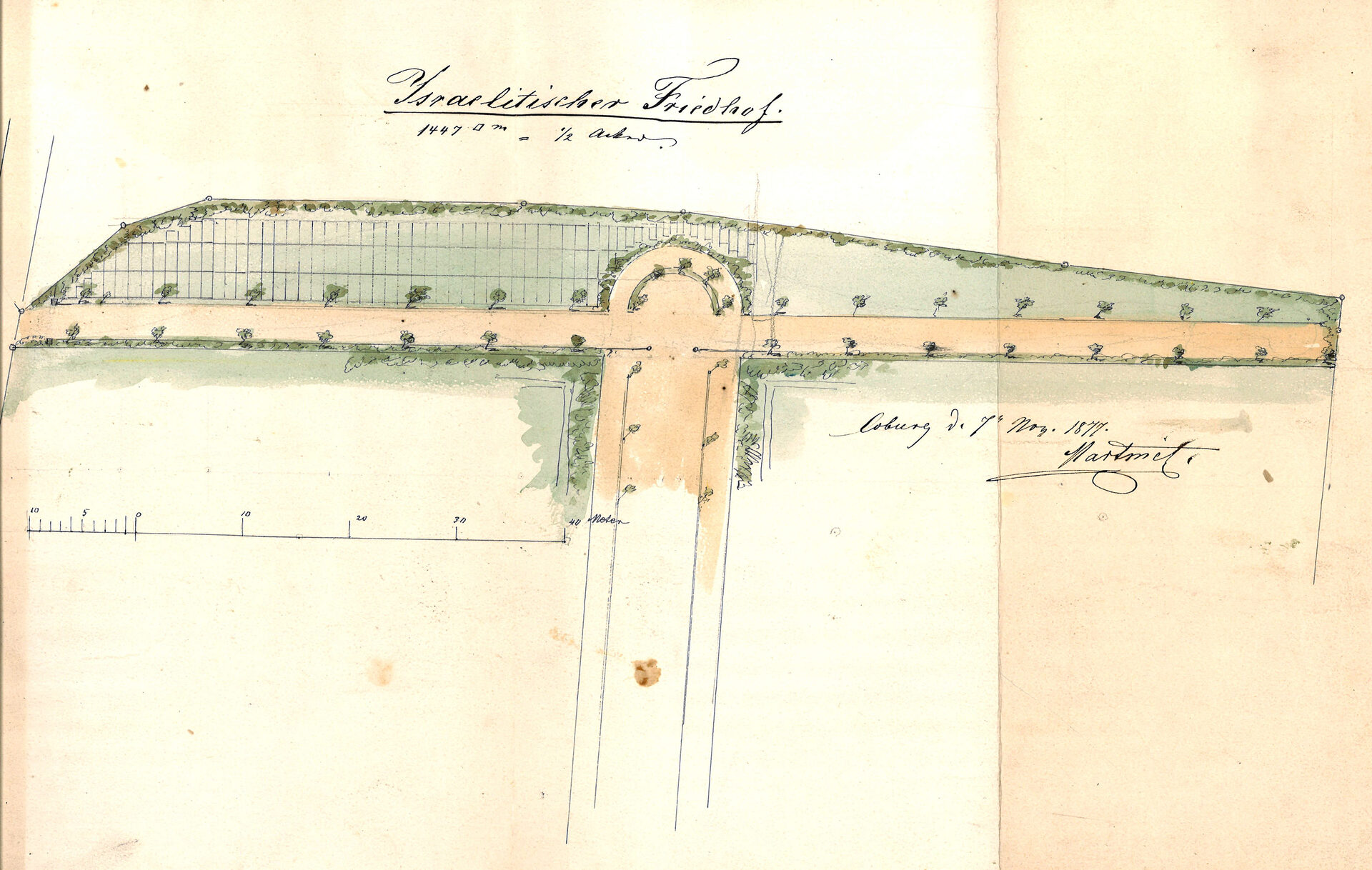1870 baten deshalb die neu nach Coburg gekommenen Juden bei der Stadt, um die Anlage eines eigenen Bestattungsareals, östlich des städtischen Friedhofs am Glockenberg. Die entsprechende Fläche erwarb die israelitische Kultusgemeinde nach Zustimmung der Stadt im Jahr 1873. Den Juden gestattete man dabei gegen ein Entgelt die Mitbenutzung der Leichenhalle und des Leichenwagens.