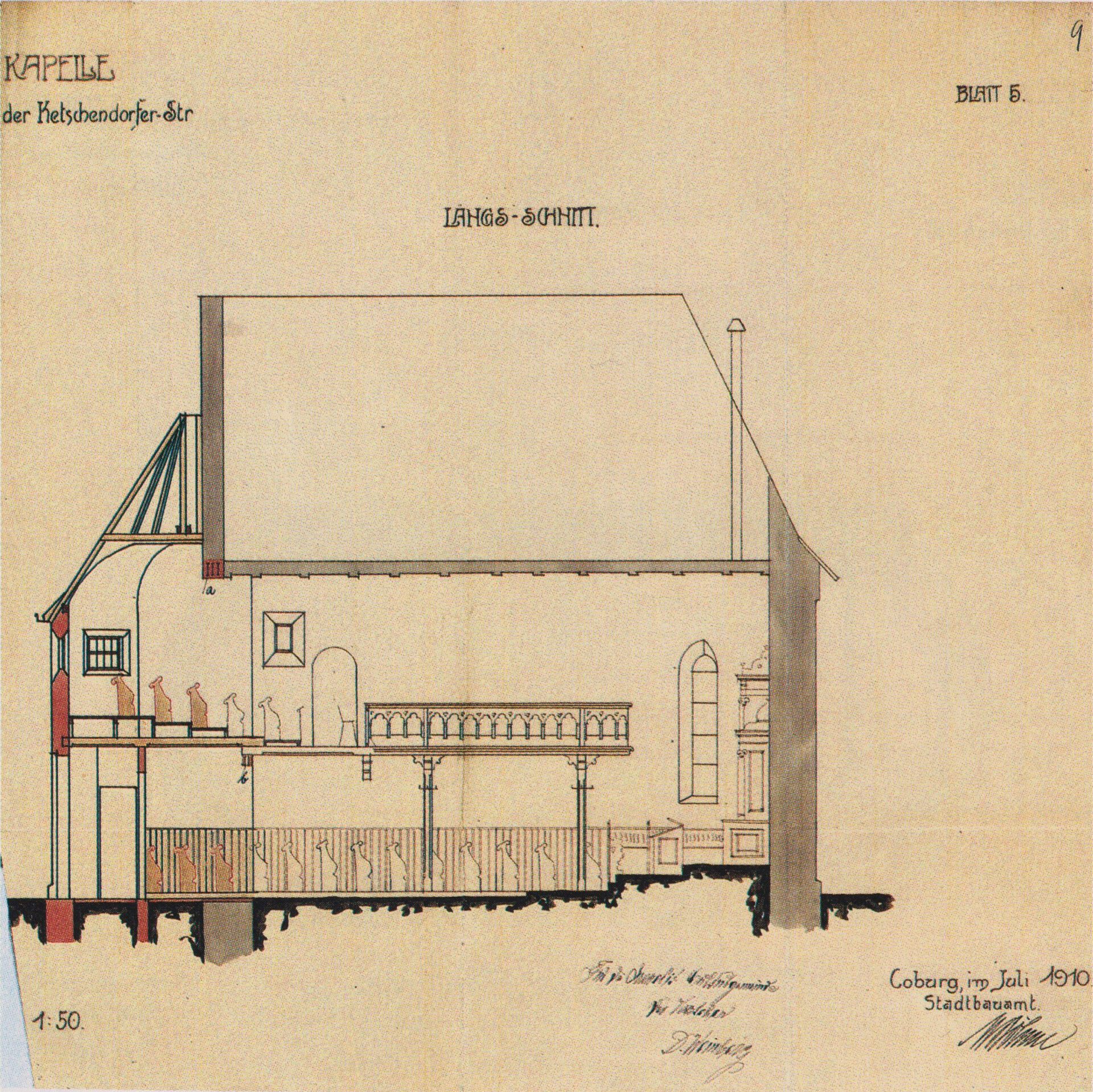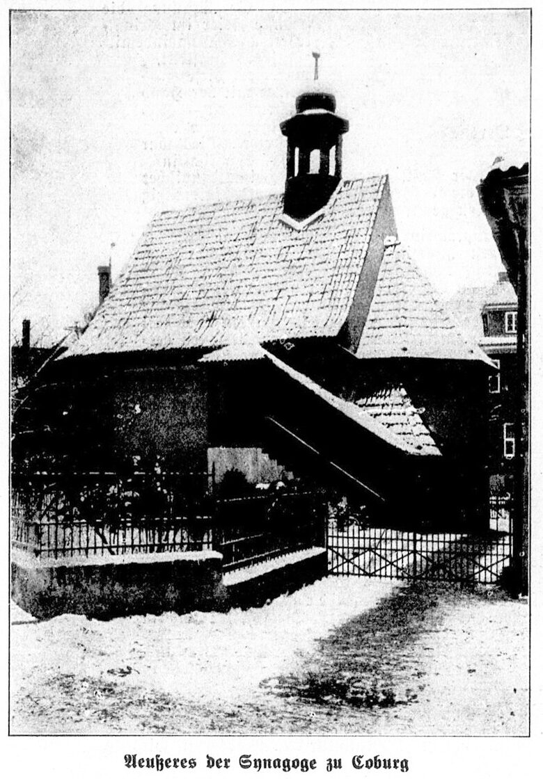 Das Kapelle wurde zunächst als katholische und dann als evangelische Kirche genutzt, stand einige Jahre lang leer und wurde dann an Rosch ha-Schana (jüdisches Neujahr) 1873 als Synagoge eingeweiht. Die jüdische Gemeinde kam für die Instandhaltung und den Betrieb des Hauses auf. Simon Oppenheim war von 1873 bis 1914 als Religionslehrer, Vorbeter und Prediger tätig. Hermann Hirsch übernahm diese Rolle und war von 1914 bis 1932 im Amt. Als Prediger Hirsch während des Ersten Weltkriegs als Militärpfarrer diente, kehrte Prediger Oppenheim nach Coburg zurück, um die Gottesdienste zu leiten, bis Prediger Hirsch 1917 heimkehrte. Die Rolle des Vorsitzenden der jüdischen Gemeinde ging 1911 von Israel Masur auf seinen Sohn Dr. Alfred Masur über.