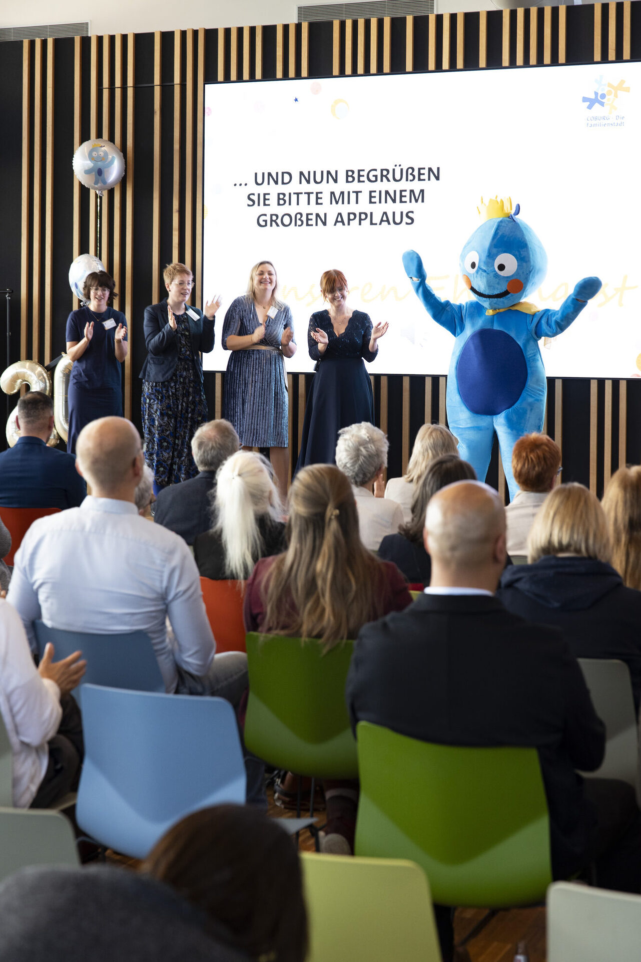 Ein besonderes Highlight des Abends war der Auftritt des Maskottchens Büni, das für Spaß und gute Laune sorgte und alle Gäste begeisterte. Ein weiterer feierlicher Moment: die Unterzeichnung des 100. Bündnispartners, ein Meilenstein für das Netzwerk und ein Zeichen für das kontinuierlich wachsende Engagement für Familien in Coburg: Dieses Netzwerk lebt – und wächst weiter.