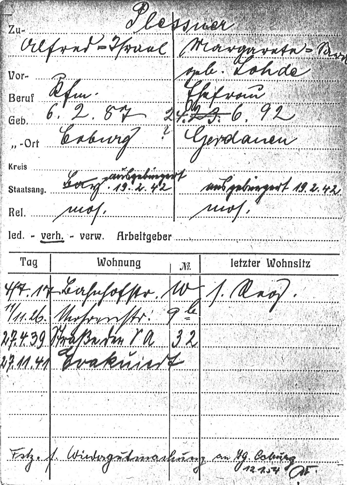 [35]  Stadtarchiv Coburg, Einwohnerkartei, Plessner, Alfred und Margarethe.