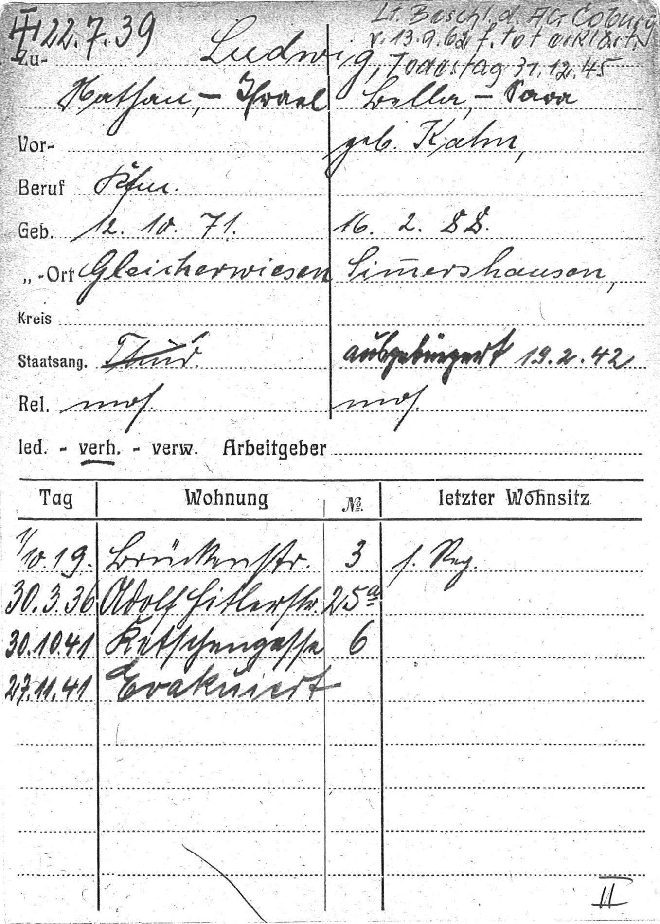 [14] Stadtarchiv Coburg, Einwohnerkartei, Ludwig, Erna Hilde