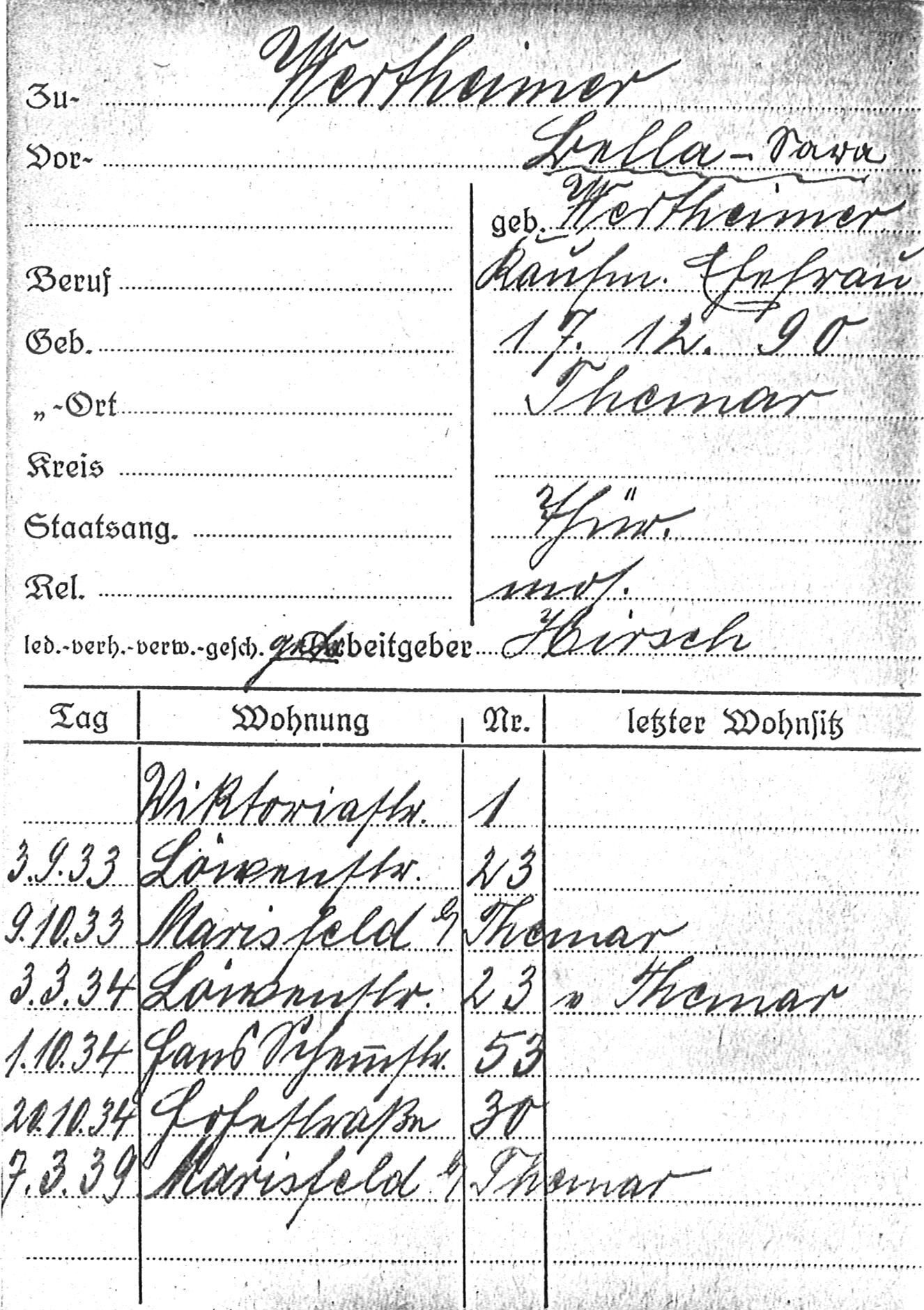 [1] Stadtarchiv Coburg, Einwohnerkartei, Wertheimer, Bella.
