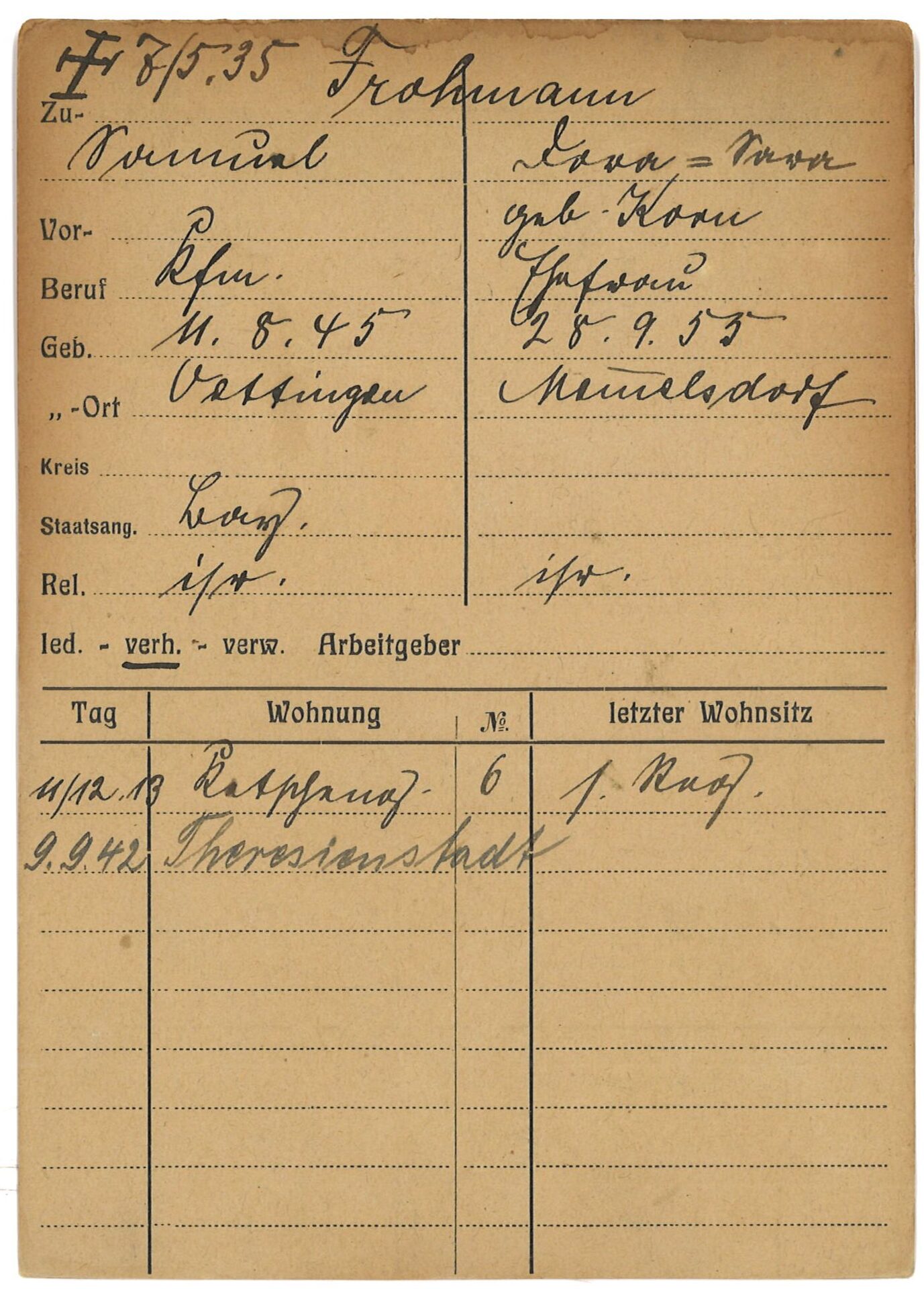 [1] Stadtarchiv Coburg, Einwohnerkartei, Frohmann, Samuel und Dora.
