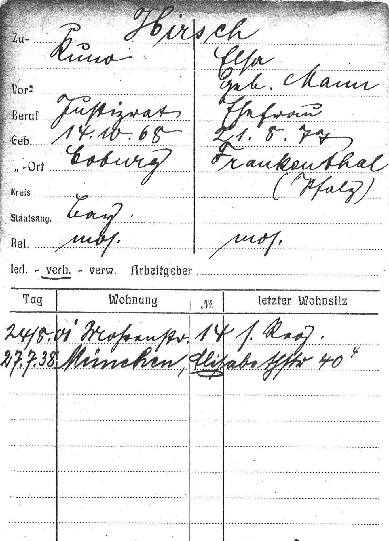 [1] Stadtarchiv Coburg, Einwohnerkartei, Hirsch, Kuno und Elsa.