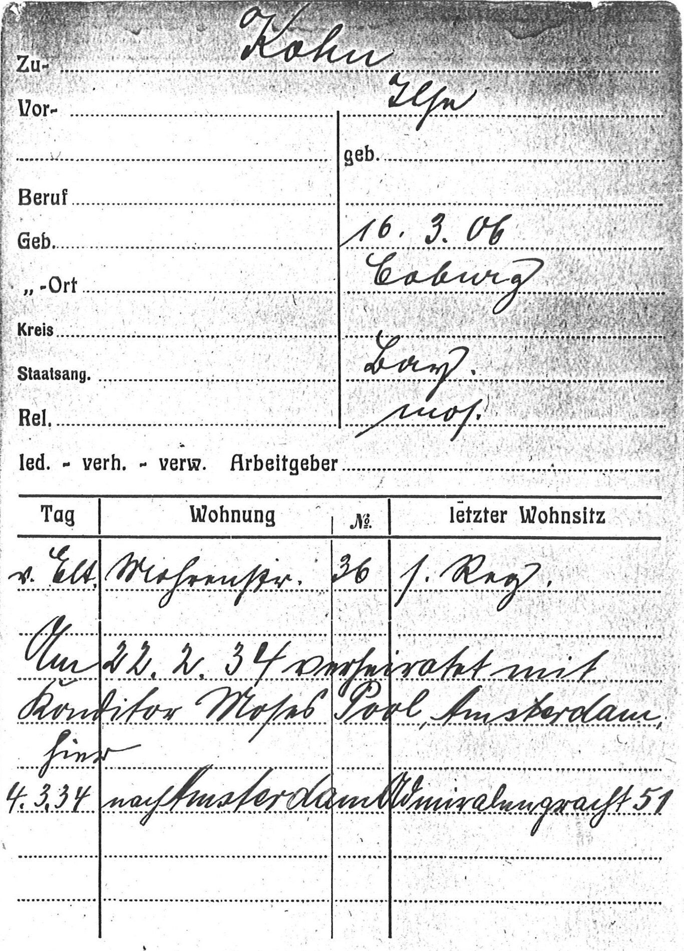 [1] Stadtarchiv Coburg, Einwohnerkartei, Kohn, Ilse.