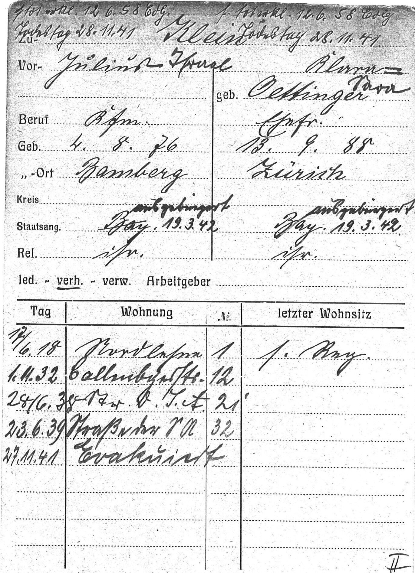 [3] Vgl.: Stadtarchiv Bamberg: 125_10 Klein_Familienkarte C 9 + 58 a_Eltern Julius Klein - Benno Klein mit Charlotte Ballin.