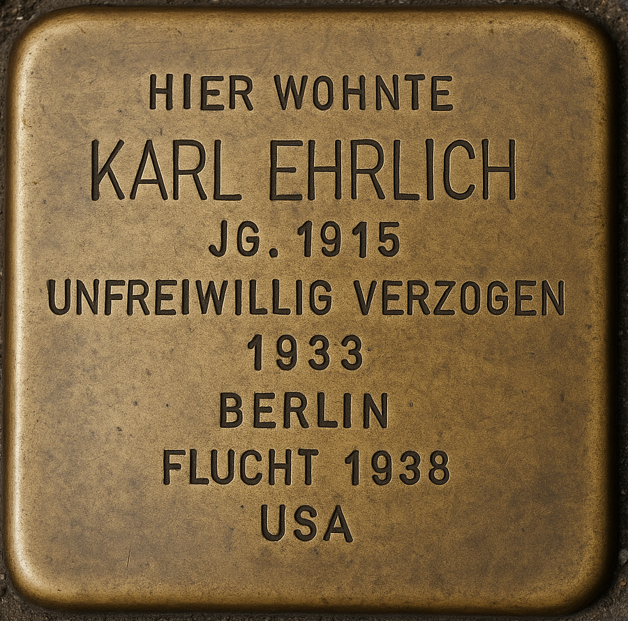 Die Patenschaft über den Stolperstein von Karl Ehrlich haben Gerald und Vicky Ehrlich übernommen.