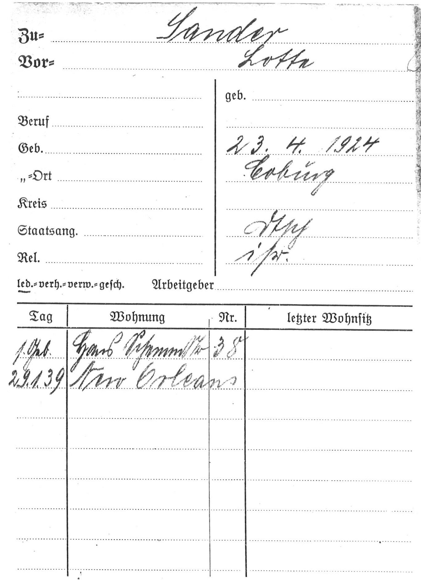 [1]   Stadtarchiv Coburg: Einwohnermeldekarte Sander, Lotte.