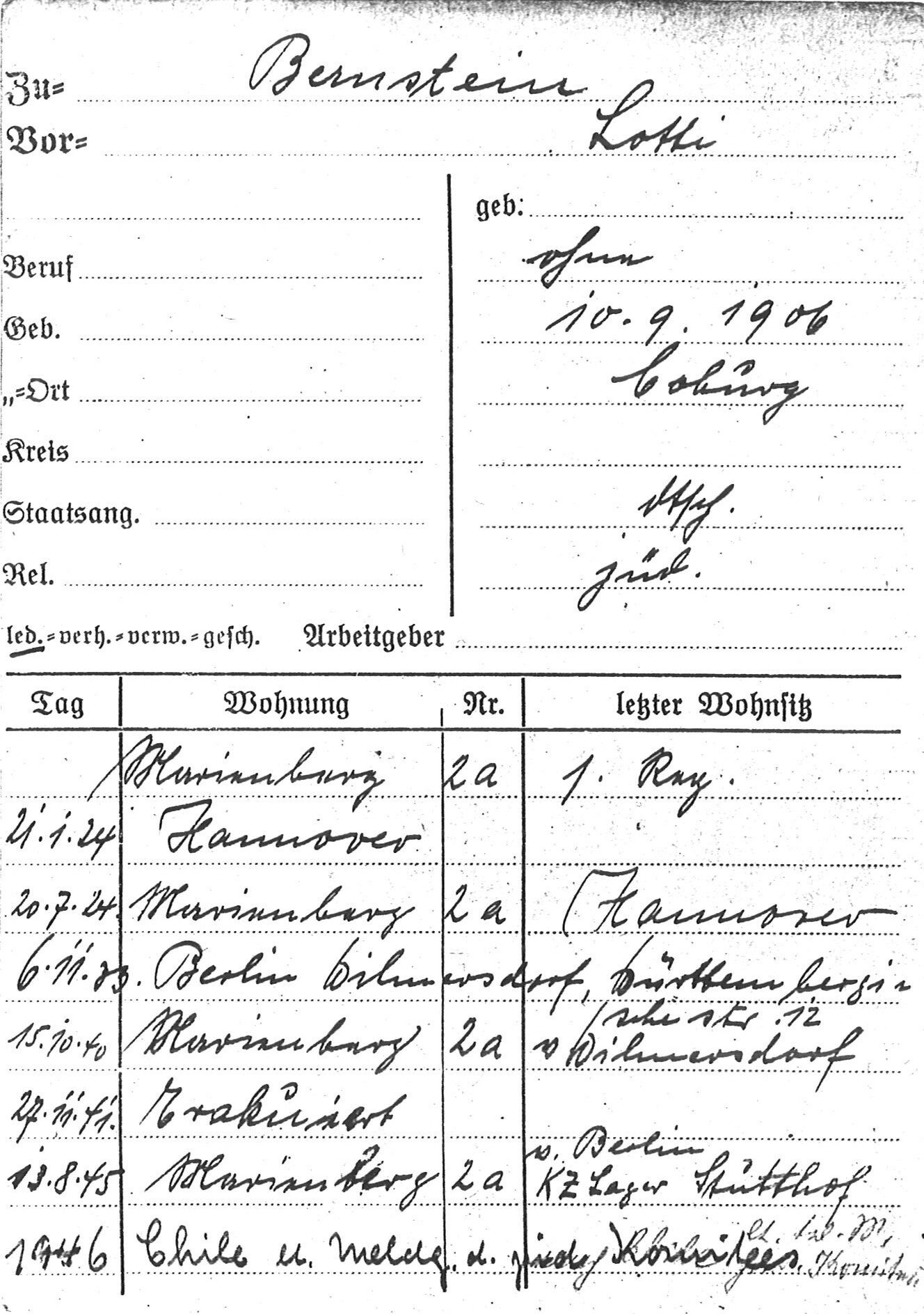 [5] Stadtarchiv Coburg, Einwohnerkartei, Bernstein, Lotti.