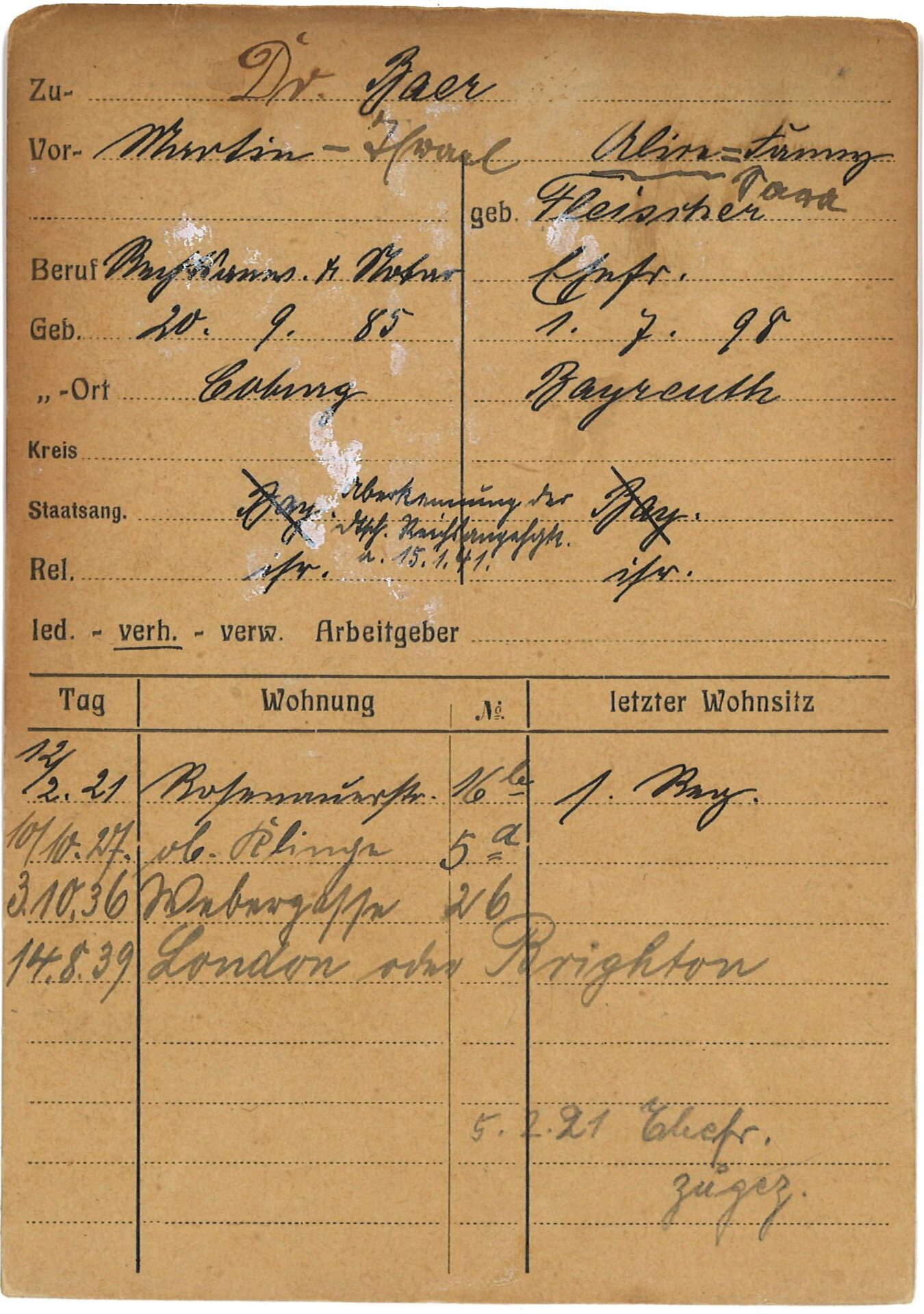 [38] Stadtarchiv Coburg, Einwohnerkartei, Baer, Martin und Alice.