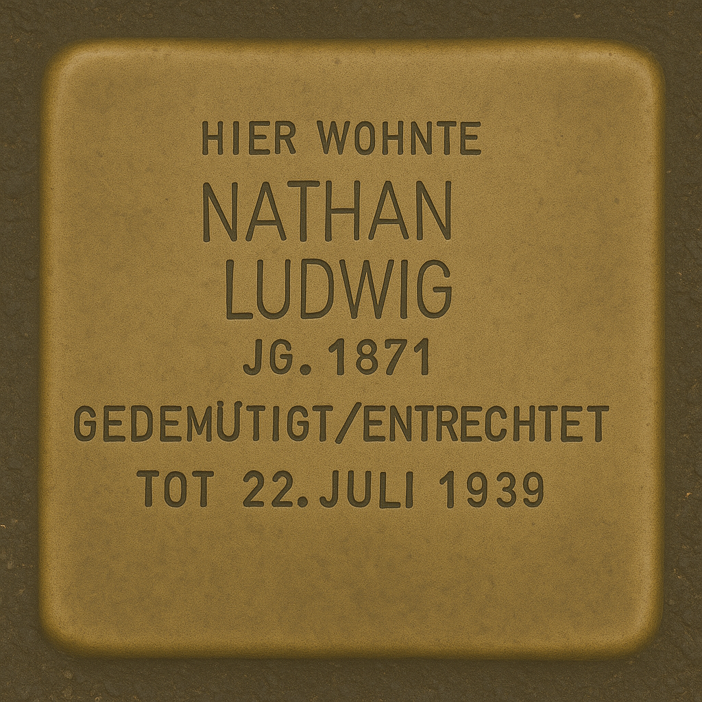 Am 10. November 1938 wurden Nathan Ludwig und seine Frau infolge der sogenannten „Reichspogromnacht“ aus ihrem Haus geholt. Gemeinsam mit anderen jüdischen Bürgern aus Coburg wurden sie durch die Stadt getrieben und auf dem Marktplatz öffentlich gedemütigt. Während Frauen und Kinder später nach Hause zurückkehren durften, brachte man Nathan und die anderen jüdischen Männer in die alte Turnhalle am Anger. Ursprünglich war geplant, 16 von ihnen in das Konzentrationslager Dachau zu deportieren. Da dieses jedoch überfüllt war, wurden die Gefangenen stattdessen in das Gefängnis von Hof an der Saale überführt.[28] Ob Nathan Ludwig zu den 16 Männern gehörte, ist nicht bekannt.