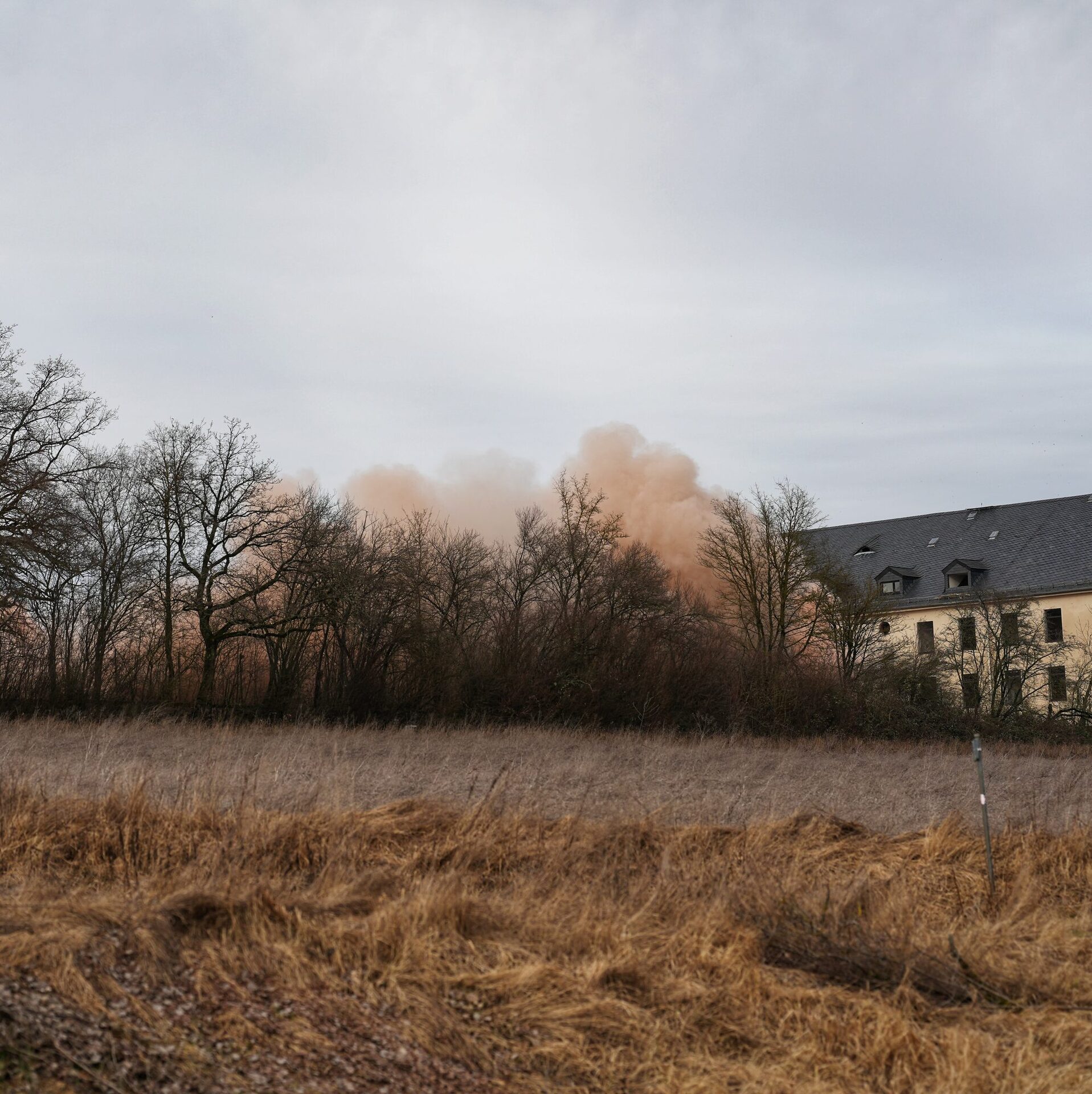 Zwei Tage lang haben die Teilnehmenden eines Sprenglehrgangs das Gelände untersucht und vorbereitet. Über 100 Löcher wurden in die Wände gebohrt, diese mit Sprengstoff gefüllt, Zündschnüre verlegt. Nach der Endkontrolle wurde am Samstag dann der Zündknopf gedrückt. Da die Sprengung nach Plan verlaufen ist, kann jetzt die Abrissfirma anrücken und die Trümmer abtransportieren.