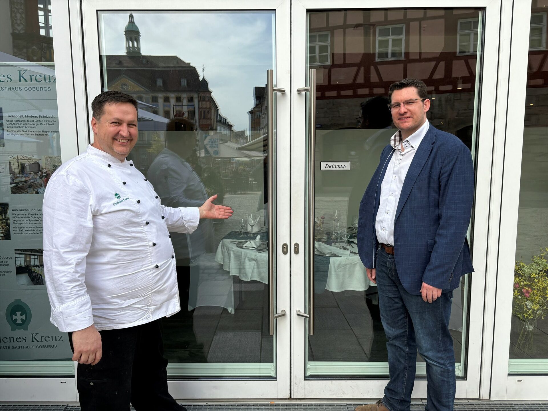 Zimmer lobte die schnelle und unbürokratische Regelung zur Außengastronomie in der Corona-Zeit. Optimistisch zeigte sich auch Uwe Sonntag zum Standort Coburg. Wenn alles gut laufe, werde der Aachener sein Sortiment deutlich ausweiten und bis Ende des Jahres sogar die 2. Etage wiedereröffnen. OB Sauerteig dankte beiden für ihr Engagement in der Stadt Coburg. „Gute, engagierte Händler und Gastronomen machen unsere schöne Stadt noch lebenswerter.“